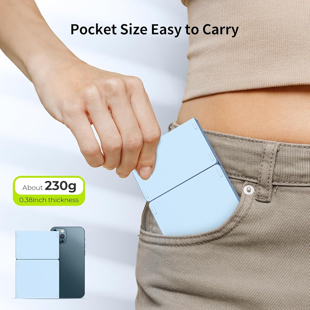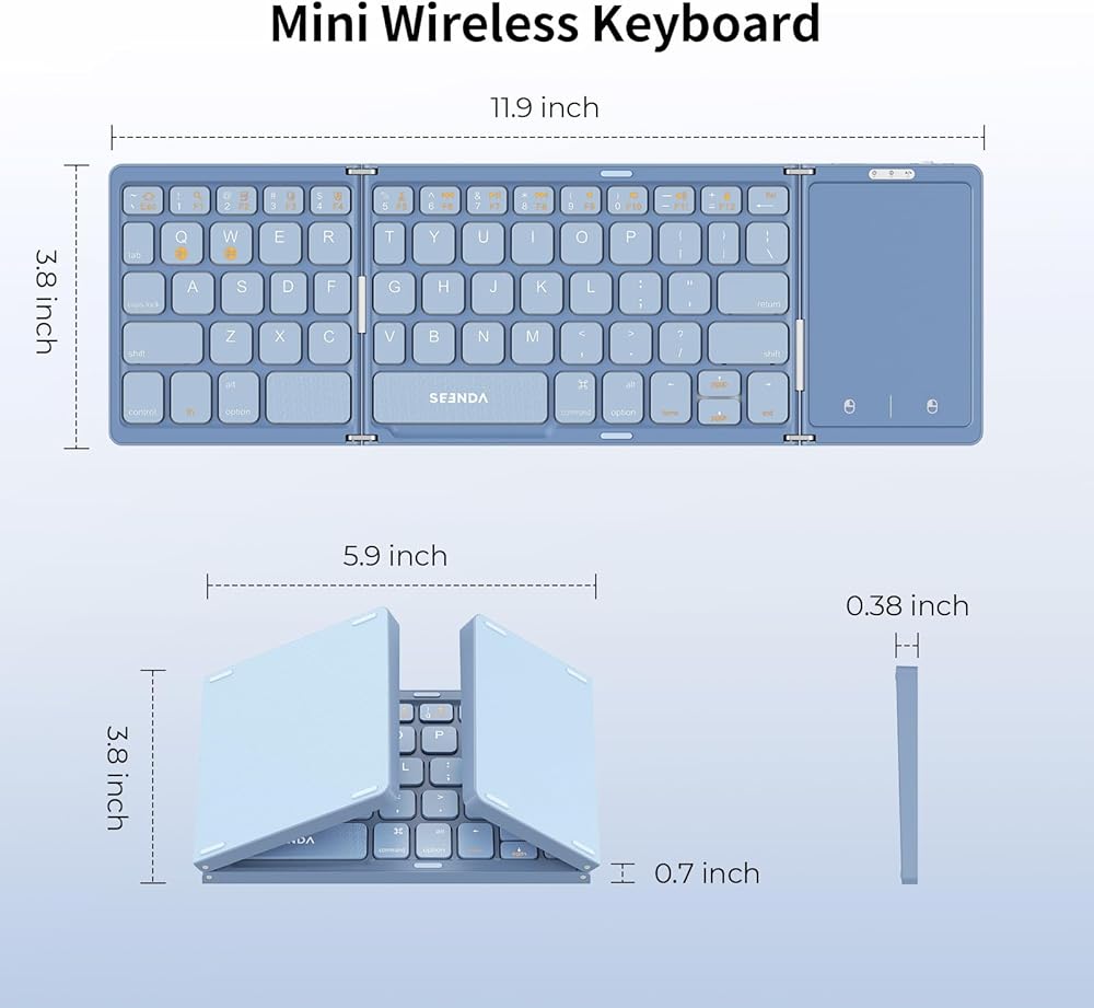• 【لوحة مفاتيح بحجم الجيب】لوحة المفاتيح هذه قابلة للحمل للغاية، بحجم مطوي 5.98 × 3.86 × 0.78 بوصة (حجم الهاتف تقريبًا) وحجم غير مطوي 11.96 × 3.86 × 0.39 بوصة. قم بطيه بسهولة ووضعه في جيبك، وهو مثالي لأولئك الذين يسافرون كثيرًا أو لديهم مساحة مكتبية محدودة