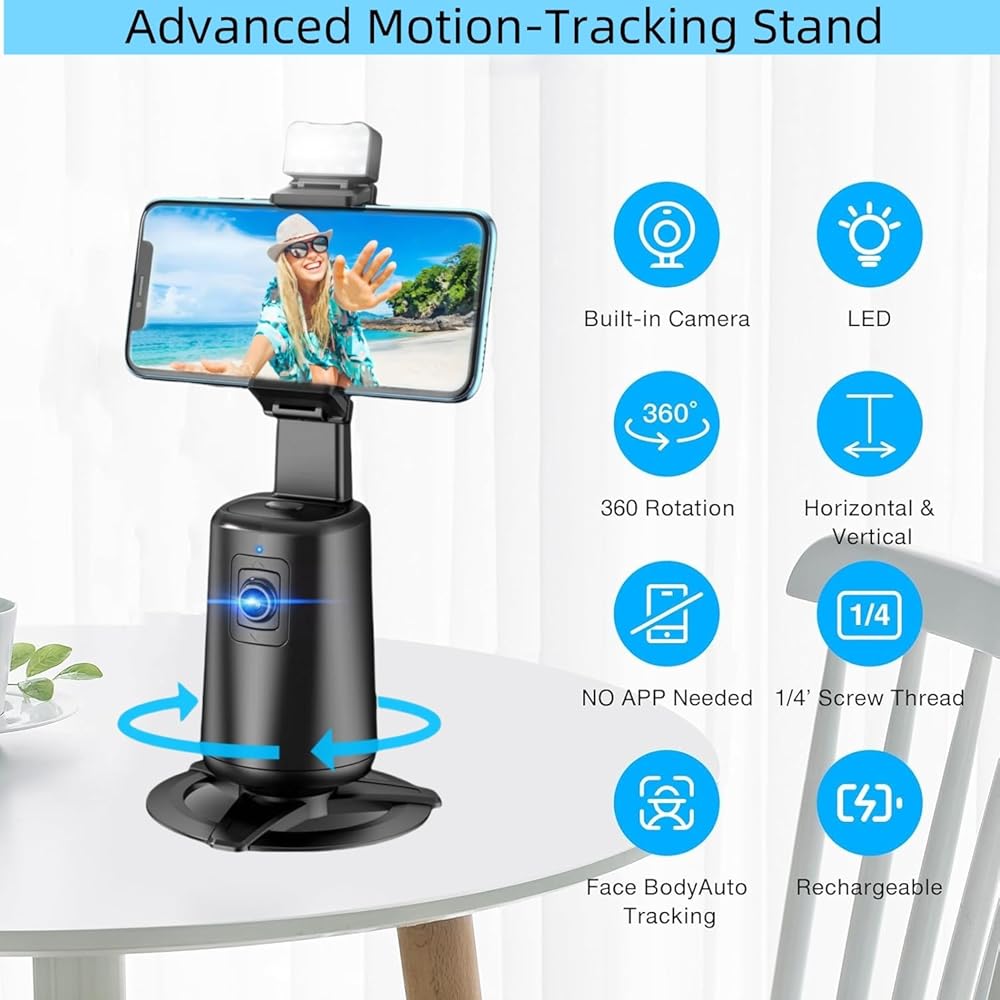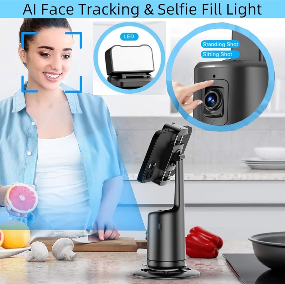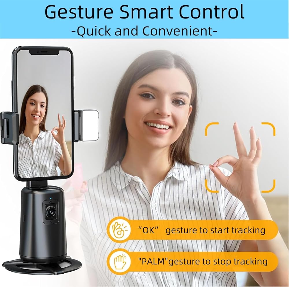 Automatic Face Tracking Tripod: 360° Rotating Phone Stand with Auto Tracking, No App Required,Gesture Controlled Phone Camera Stand, Rechargeable Smart Shooting Stand for Live Video and TikTok Recording