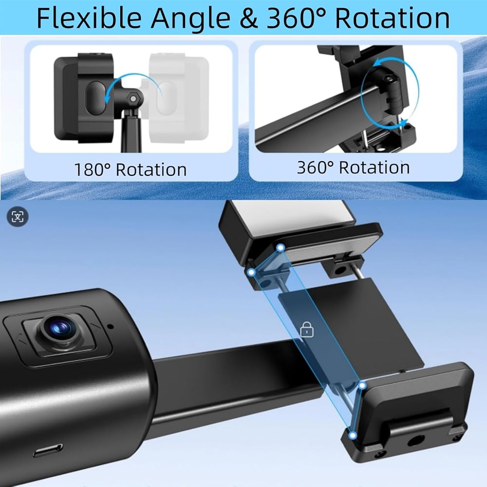 【360° AI-Powered Face Tracking】This intelligent phone holder utilizes a real-time AI computing system to automatically recognize and follow your face or body, smoothly rotating 360° as you move. Ideal for freeing your hands during video calls, live streams, and for adjusting angles vertically and horizontally.