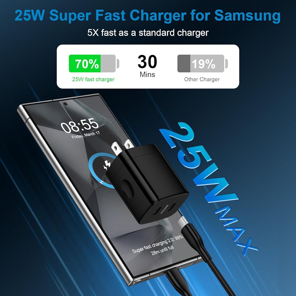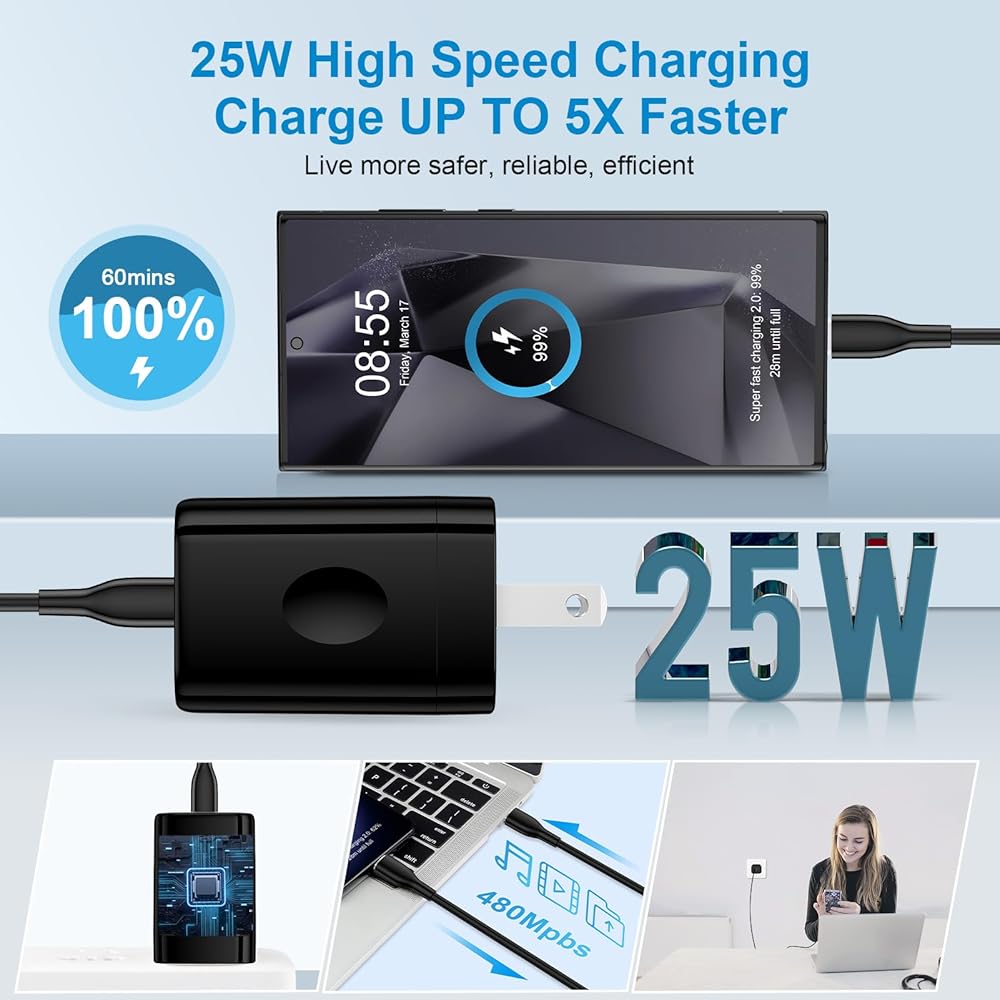 25W Super Fast Charger Type C with 60W/6FT C Charger Cable Fast Charging for Samsung