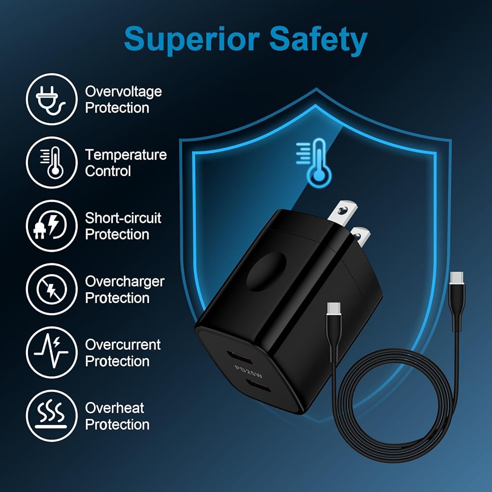 • 【Safety Assurance】: Samsung galaxy S24 ultra charger is certified by CE, FCC, and RoHS. The Motorola Razr 50 Ultra/g 5g 2024 charger is built in intelligent chips, which can protect your devices against damage caused by short circuit, over-current, over-voltage, over-heating, and over-charging issues. Double usb c charger block automatically stops charging when battery capacity is full to ensure your device safety and longevity.