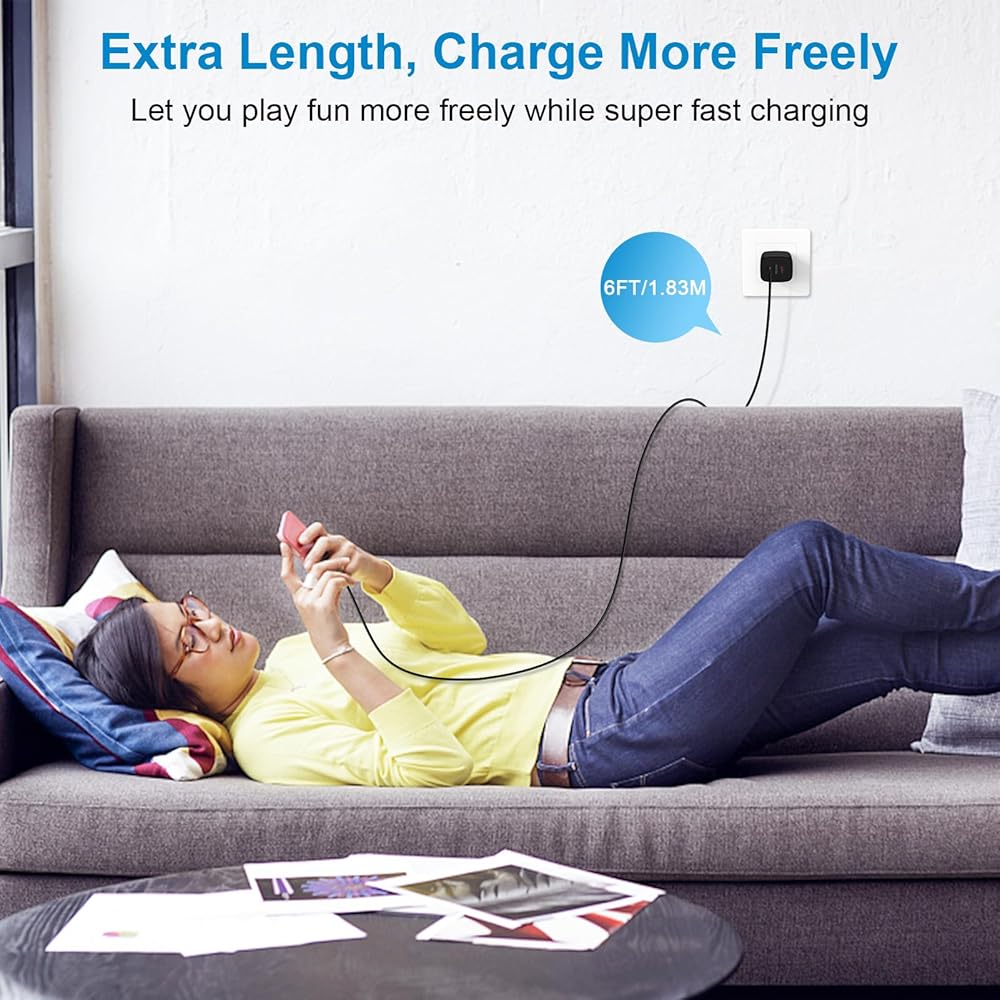 • 【60W/6FT USB C to USB C Cable】: The samsung galaxy A15 charger cord motorola edge 2024 cable ensures a maximum charging speed up to 3A, and transfers data at 480Mbps via USB 2.0&3.0. Type C Charging Cable is equipped with strong TPE material, can bear 20000+ bending tests. With 6ft length, android phone charger cord is long enough for you to lie on the bed and use your devices while you are charging at the same time. Allow you to be used freely in the living room, office, and car.
