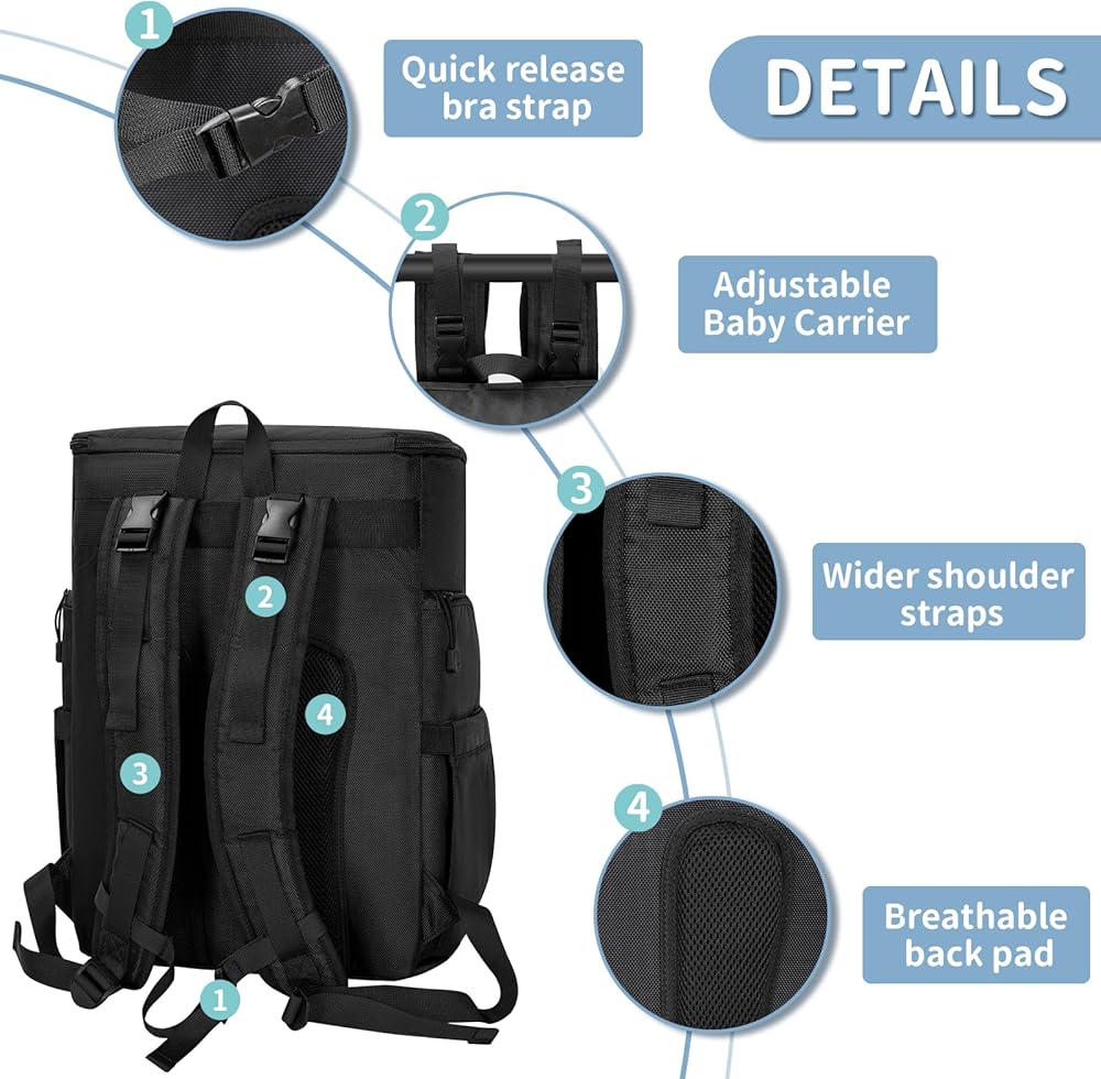 سعة كبيرة: مقاس حقيبة الحفاضات 17. 3*12. 59*7. 48 بوصة، مجموعة متنوعة من الجيوب تسمح بسهولة التنظيم. للأمهات والآباء المشغولين الذين يحتاجون إلى حقيبة ظهر موثوقة وعملية للسفر.