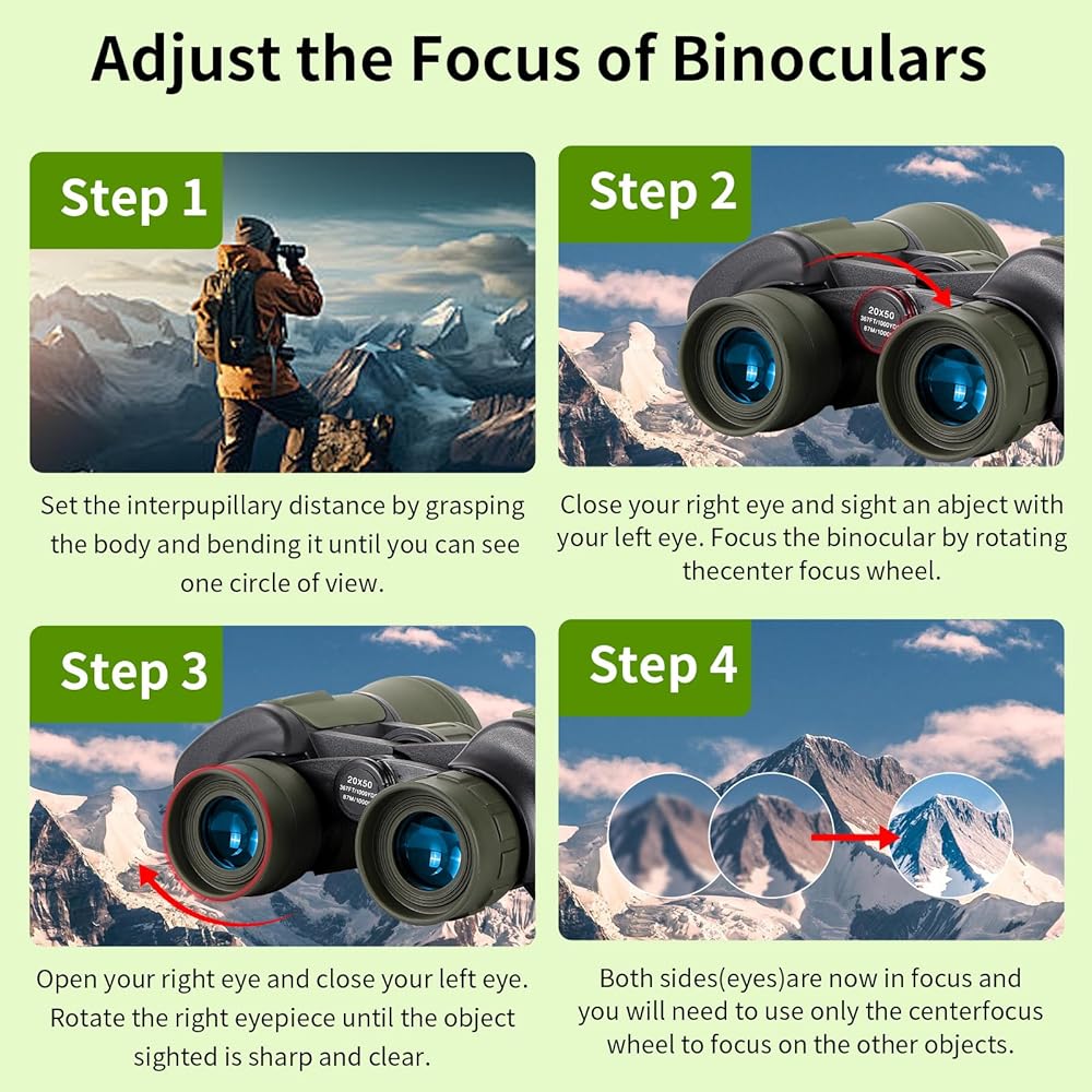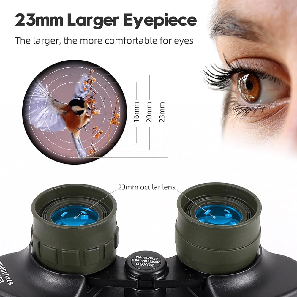 ✅【مناظير عالية الطاقة 】يضمن التكبير 20x والعدسة الشيئية 50 مم رؤية واسعة الزاوية من مسافات تزيد عن 1000 ياردة. هذه المناظير خفيفة الوزن مثالية لمشاهدة الطيور والصيد والسفر ومشاهدة النجوم والحفلات الموسيقية وألعاب كرة القدم والتسلق والمشي لمسافات طويلة والقيادة ومراقبة الحياة البرية والاستمتاع بالمناظر الطبيعية.