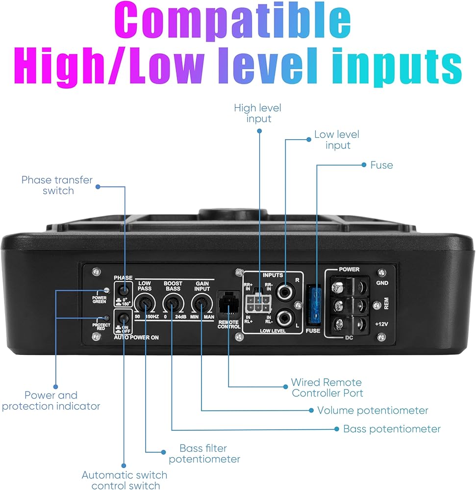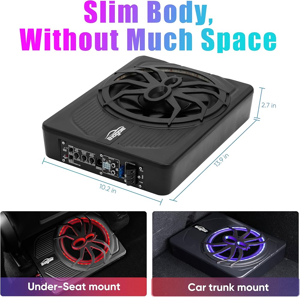【تصميم عالي الجودة】- تقدم Blogole مضخم صوت نحيف للغاية مقاس 10 بوصات يعمل بالطاقة تحت المقعد للسيارة/الشاحنة مع مضخم صوت مدمج. تم تصنيع العلبة من الألومنيوم المصبوب لتبديد الحرارة بشكل استثنائي وأداء موثوق.