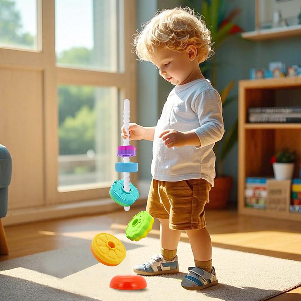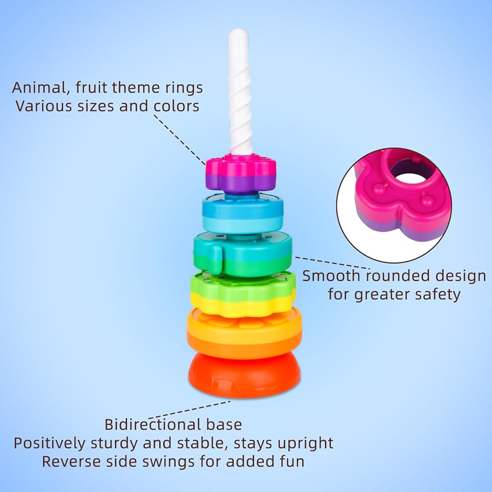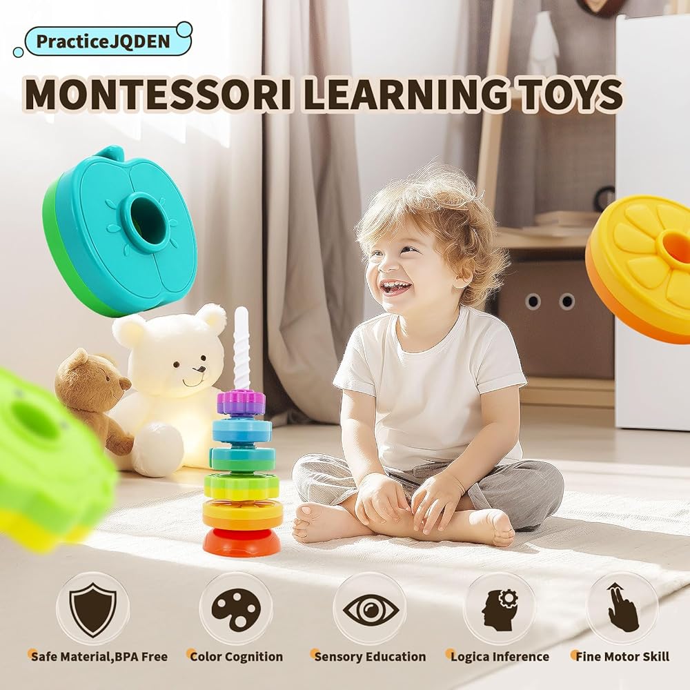 لعبة أطفال تعليمية: إنها نسخة مطورة من لعبة الأطفال الدائرية المكدسة. تتضمن أشكال الفاكهة والحيوانات، ويمكن تكديسها بمرونة بأي طريقة، مع تصميمات قاعدة مزدوجة مختلفة، متأرجحة أو متينة. يمكن للطفل فرز الأقراص حسب اللون والشكل والحجم.