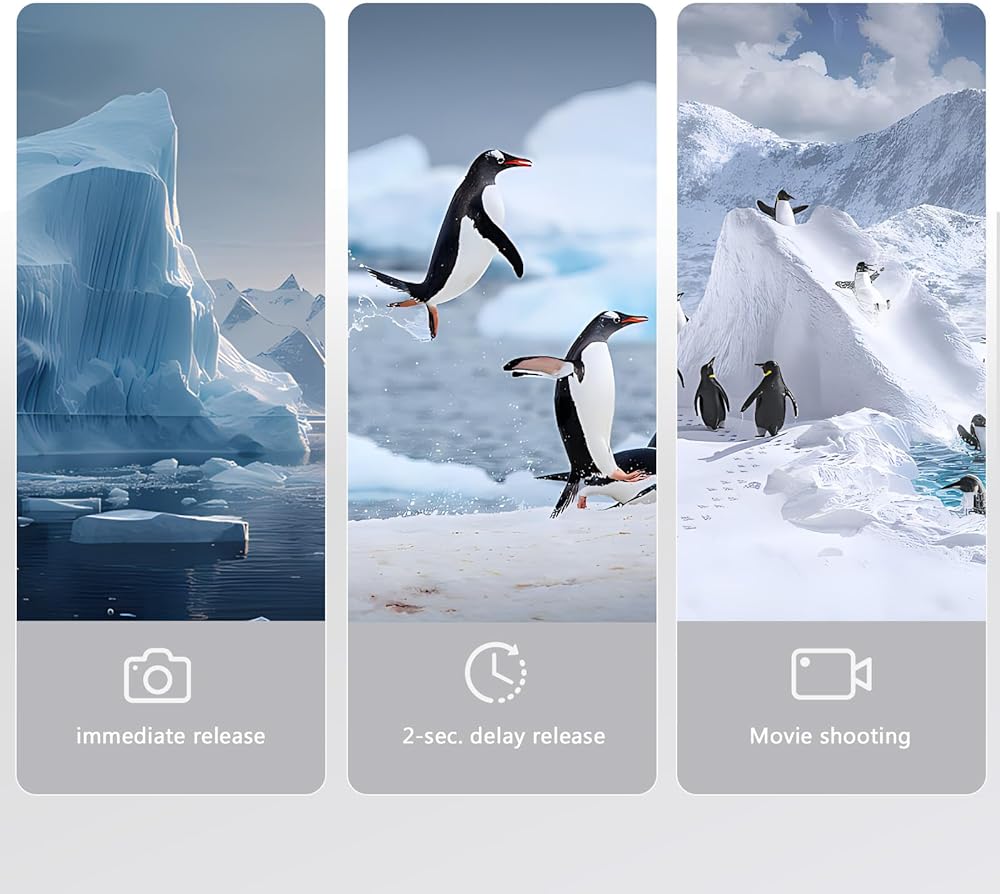 التقاط الصور ومقاطع الفيديو - يمكنك استخدام تحرير الغالق هذا لالتقاط الصور الثابتة ومقاطع الفيديو، ويمكنك التقاط صور سيلفي ولقطات جماعية وتجنب اهتزاز الكاميرا الذي يمكن أن يحدث بسبب الضغط يدويًا على الغالق.