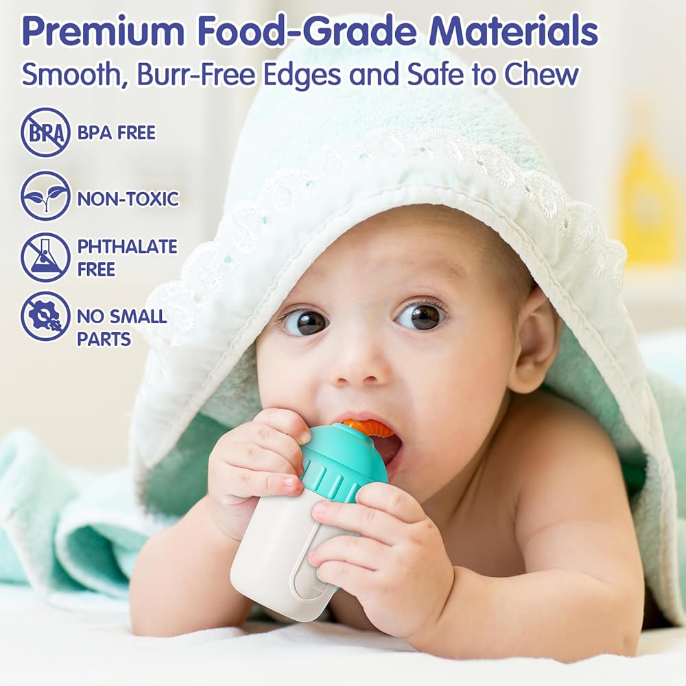 💖 مواد فاخرة صالحة للطعام: ألعاب التسنين للأطفال مصنوعة من مواد غير سامة وخالية من مادة BPA وهي آمنة للأطفال للمضغ والقضم. مصممة بعناية بحواف ناعمة وبدون نتوءات لضمان السلامة ومنع أي إصابات محتملة.