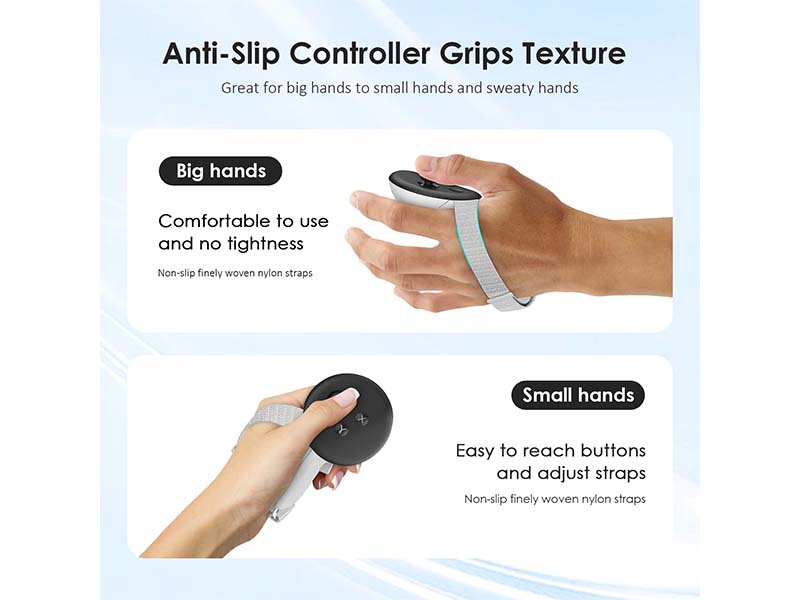 حماية وحدة التحكم: تضمن مقابضنا المصنوعة من النايلون المنسوجة بدقة لمقابض وحدات التحكم Quest 3 ملاءمة آمنة وغير قابلة للانزلاق، وتمنع السقوط العرضي وإضافة قبضة إضافية لتعزيز التحكم.