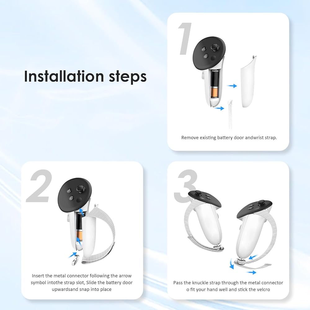 الوصول بدون جهد: يمكنك الوصول بسهولة إلى البطاريات دون إعاقة مصابيح LED الخاصة بالمستشعر، مما يضمن الاتصال دون انقطاع لملحقات Meta Quest 3.