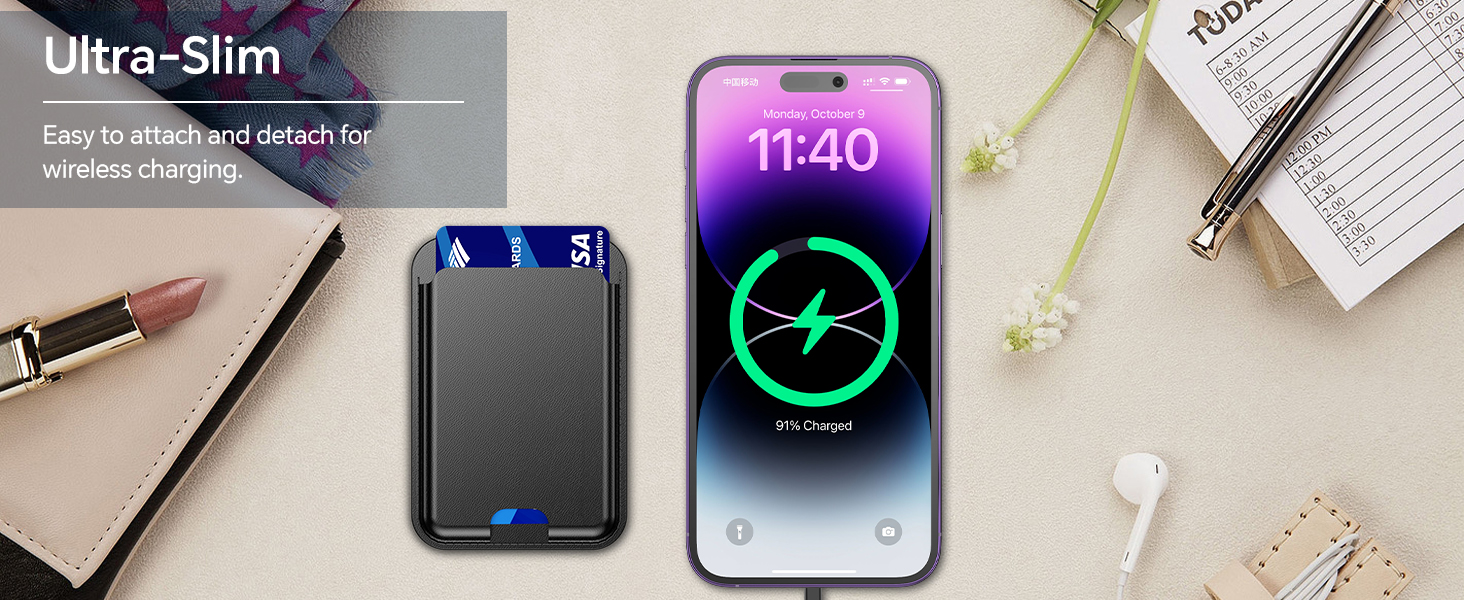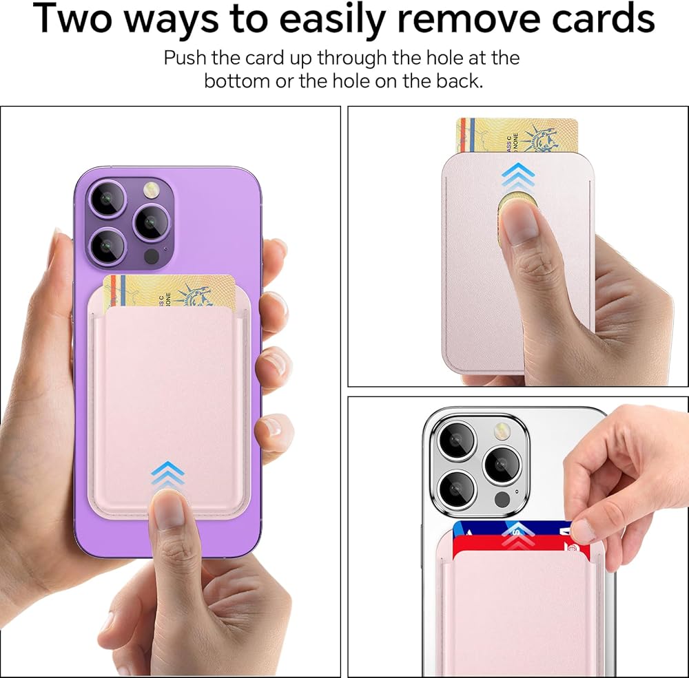 • ✅[سهولة إخراج البطاقات]: فقط اضغط على الفتحة الفارغة في محفظة Mag-Safe، وادفع البطاقة للخارج، ثم اسحب البطاقة.