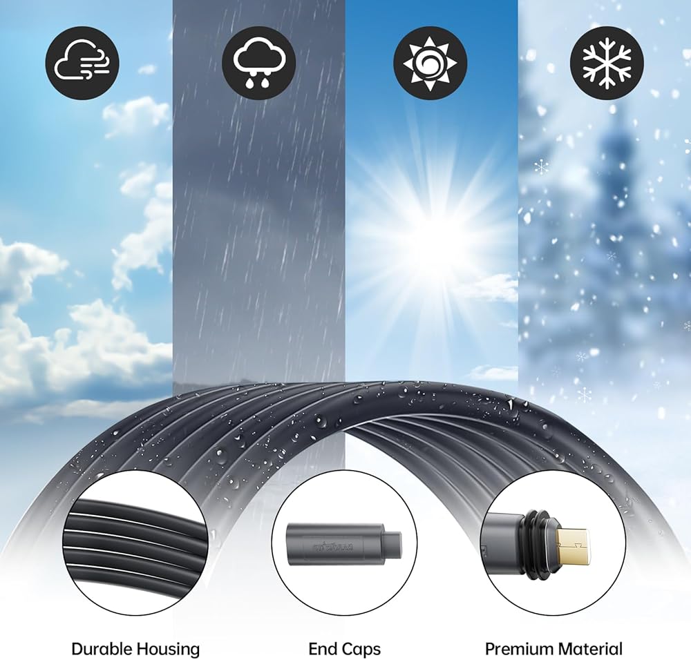 • [اتصال في جميع الأحوال الجوية] تم تصميم كابل Starlink للاتصال في جميع الأحوال الجوية. سواء كان يوم صيف حار، أو يوم شتاء بارد، أو يوم ممطر أو ثلجي قاس، فإنه يحافظ على اتصال مستقر، مما يضمن أن شبكتك متصلة بالإنترنت دائمًا، لذلك لا داعي للقلق بشأن تأثير الطقس على اتصال شبكتك .