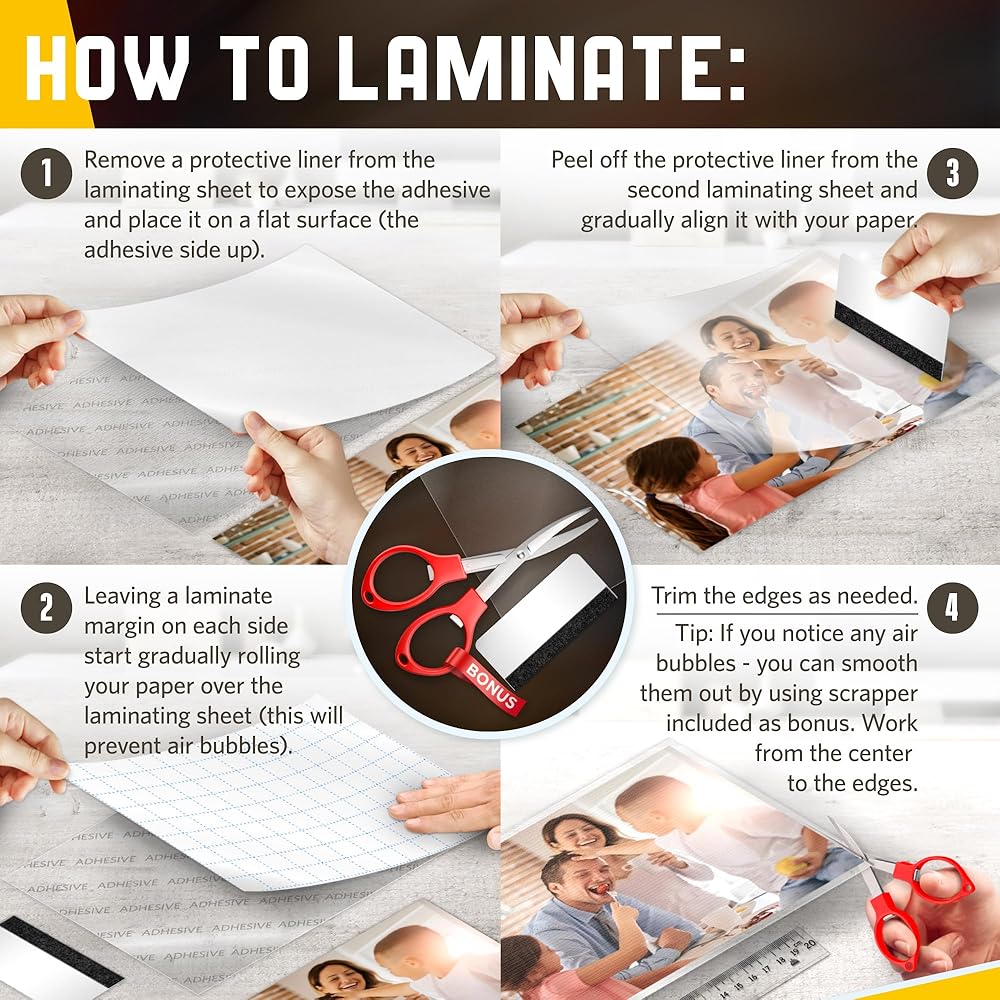 🦙 ADVANTAGES - Matte Smooth Satin laminating sheets provide photo-clarity & prevent wrinkling, staining, and tearing of your papers. Our self-adhesive matte clear contact paper laminating sheets 8.5 x 11 are anti-glare matte smooth satin finish laminating sheets. Laminating sheets self sealing are durable alternatives to sheet protectors, clear shelf liner, clear vinyl roll, clear contact paper, vinyl sticker paper.