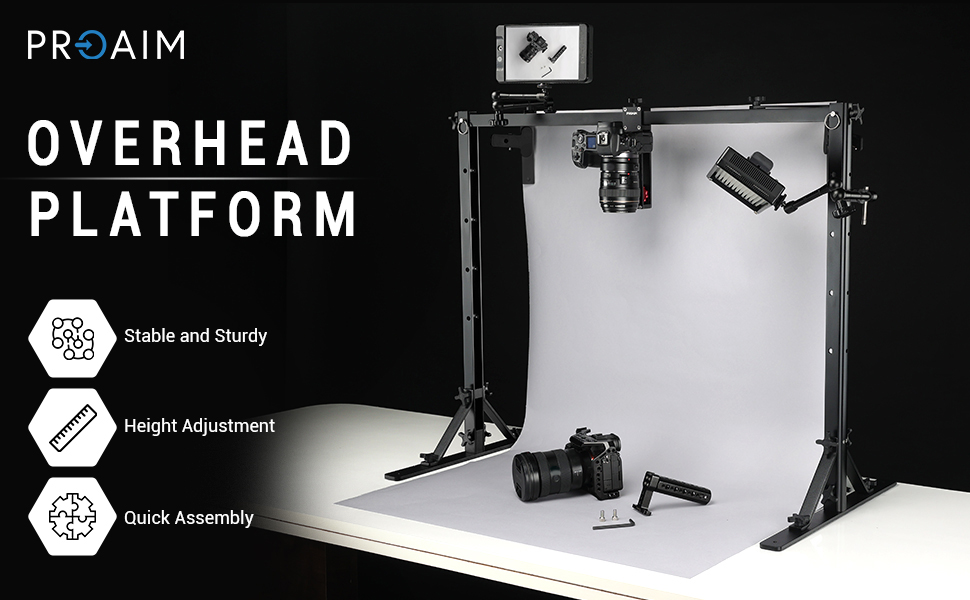 منصة علوية بطول 3 أقدام من PROAIM للكاميرا وإضاءة الاستوديو. نظام تزوير قابل للتعديل للتصوير الفوتوغرافي والفيديو العلوي. لكاميرات الفيديو DSLR، مصابيح LED للميكروفونات. حمولة تصل إلى 10 كجم/22 رطلًا (P-OHCP-01)