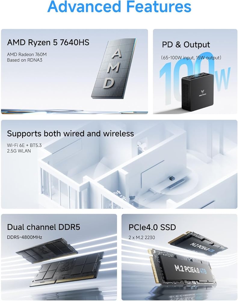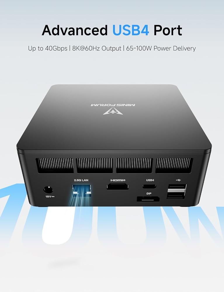 【Triple Video Output】: This UM773 Lite Personal Computer has three video output, 2x HDMI(4K@60Hz) and 1x USB4(8K@60Hz), which support multiple monitors display at the same time and provide a larger and wider filed of view and improve your work efficiency. With the special USB4 port, you could take advantage of high speed data transfer and can enhance the graphics function.