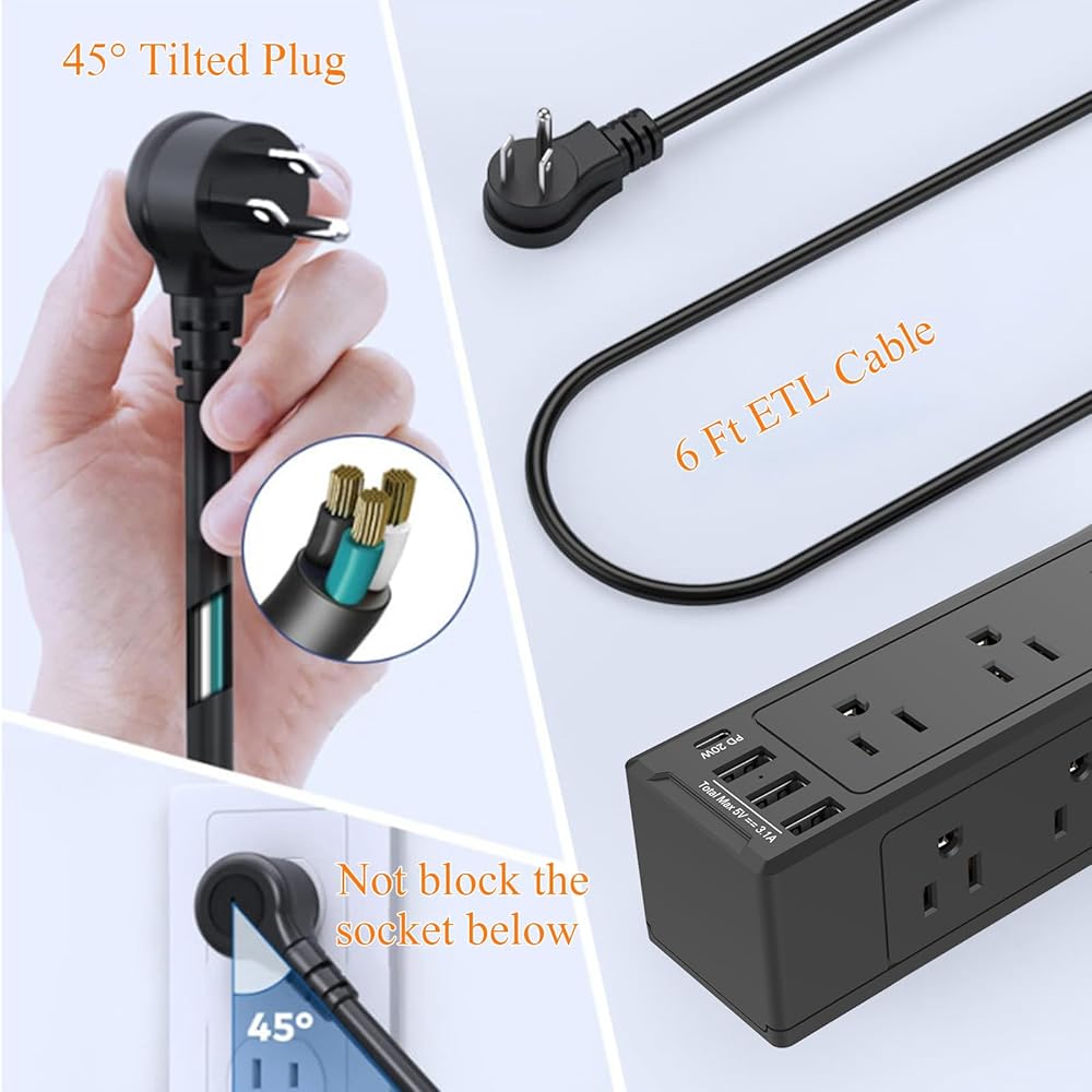 【Reliable Quality】Desktop outlet is ETL listed, made of ABS+PC fireproof material, 750 ℃ thermo-resistant and flame retardant. Have Over-Load/Short-Circuit/Over-Circuit/Over-Heated Protection safety system. High safety performance, protecting the safety of your electrical appliances or electronic equipment.
