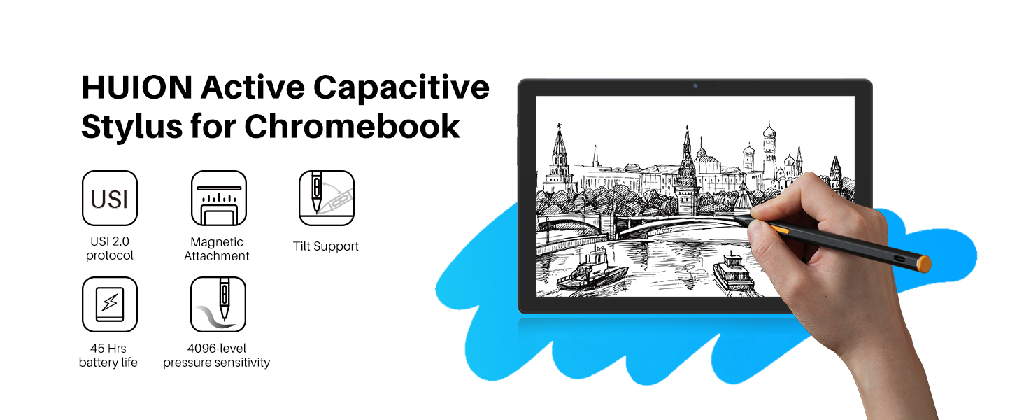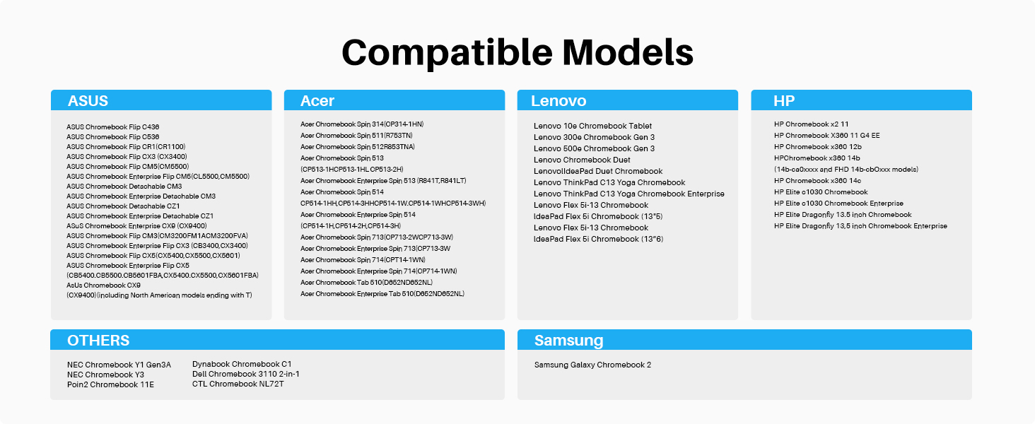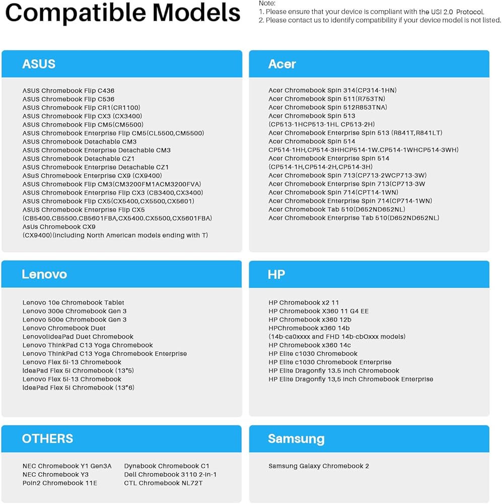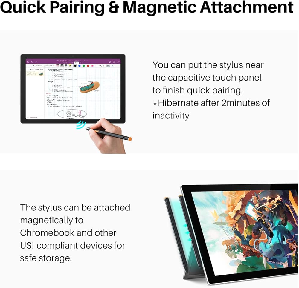 مرفق مغناطيسي: يمكن توصيل القلم مغناطيسيًا بجهاز Chromebook والأجهزة الأخرى المتوافقة مع USI للتخزين الآمن.