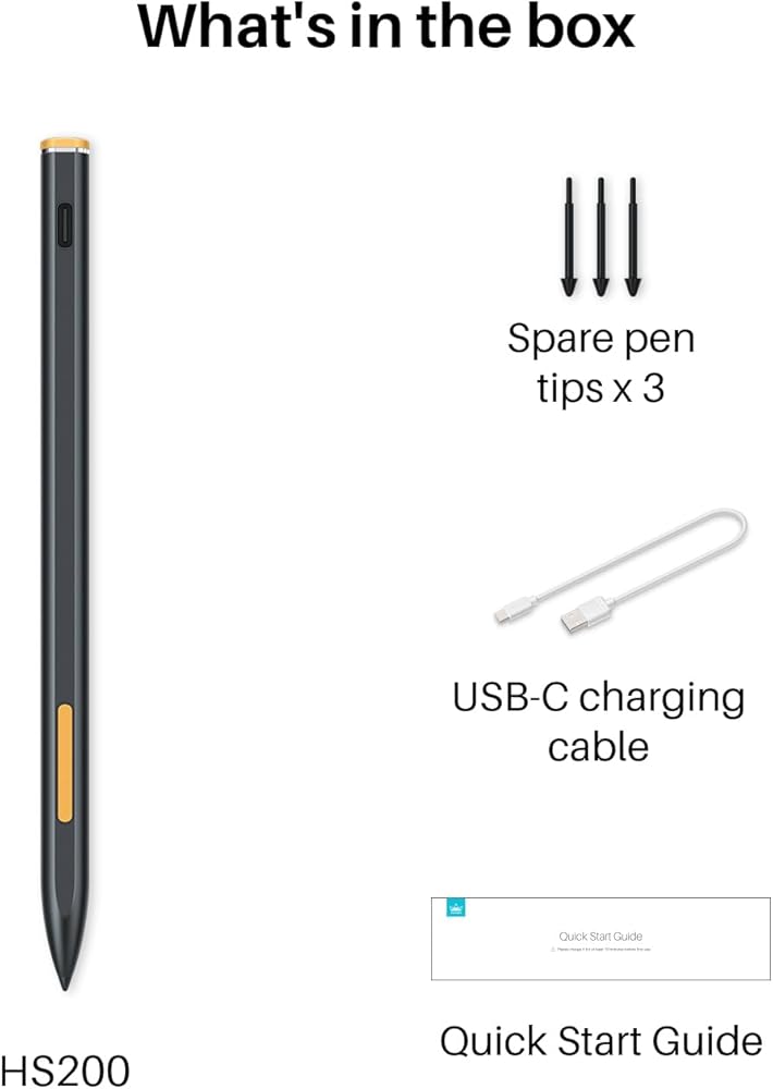أزرار القلم القابلة للبرمجة: يمكن العثور على زري قلم على جانب قلم HS200 - الزر العلوي والزر السفلي. يمكن تخصيص وظيفة زر القلم في تطبيق Hi Pain مثل منتقي الألوان والقلم الرصاص والممحاة.