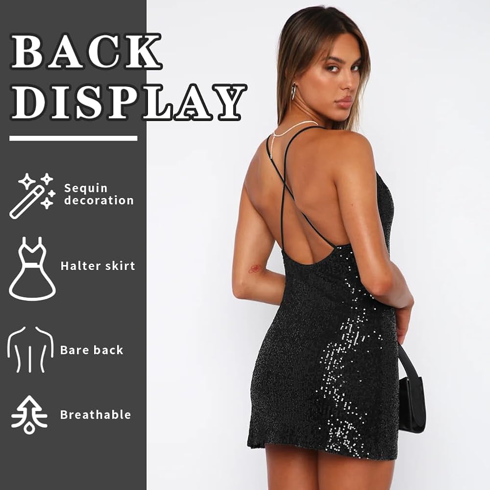 This dress is perfect for any occasion! The sexy sequin halter neckline and bare back add a touch of glamour to any outfit. The dress is made of high quality materials and is fully lined, ensuring a comfortable and flattering fit. The dress is also easy to care for, and can be machine washed and dried. Whether you're attending a wedding, a party, or a night out on the town, this dress is sure to turn heads and make you feel confident and stylish.