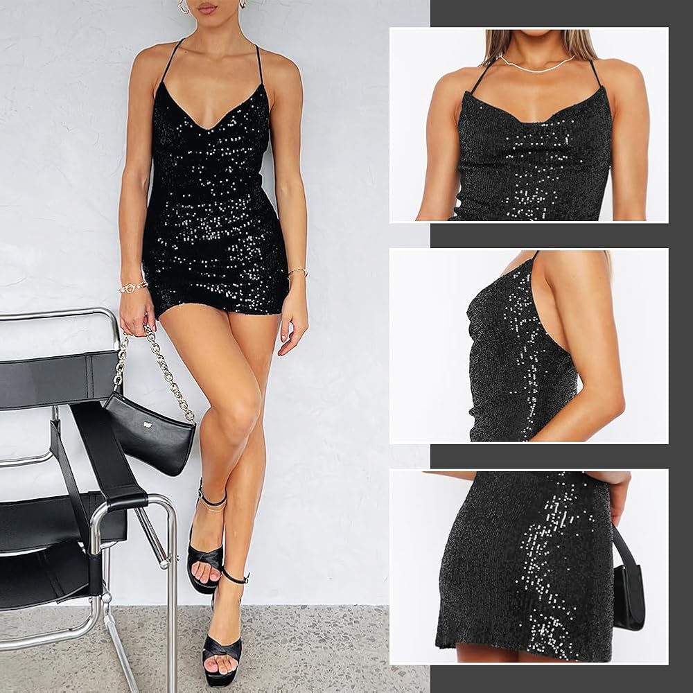 This dress is perfect for any occasion! The sexy sequin halter neckline and bare back add a touch of glamour to any outfit.