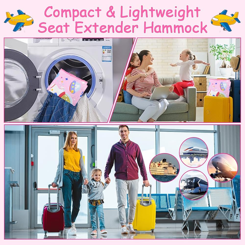 【سهلة التركيب】لا توجد حاجة لأي أدوات تركيب، ولا يوجد نفخ أو ضوضاء مزعجة لأسرّة الطائرات القابلة للنفخ. ما عليك سوى توصيل جانب واحد بظهر الكرسي وتعليق الجانب الآخر على مسند ذراع الطاولة الصغيرة أمام المقعد، وضبط الفيلكرو النايلون والإبزيم ليناسب أي حجم من مقاعد الطائرة، مما يسمح لطفلك الصغير بالاستمتاع براحة الأطفال. أرجوحة.