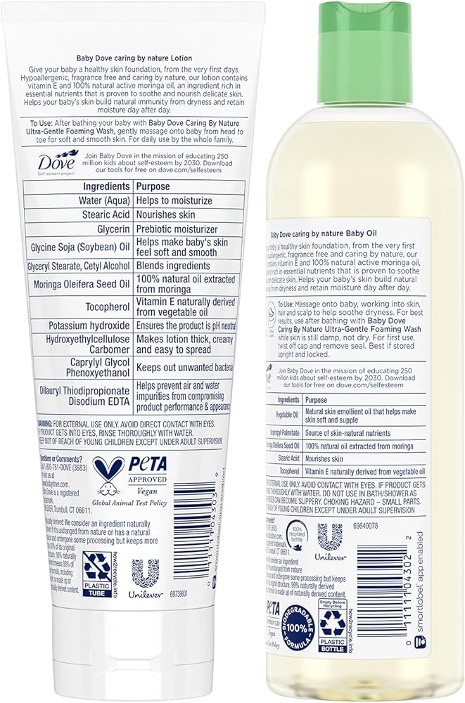 GENTLE & SOOTHING SKIN CARE FOR BABY: This Baby Dove bundle includes a baby oil and baby lotion that are sensitive to the needs of delicate skin.