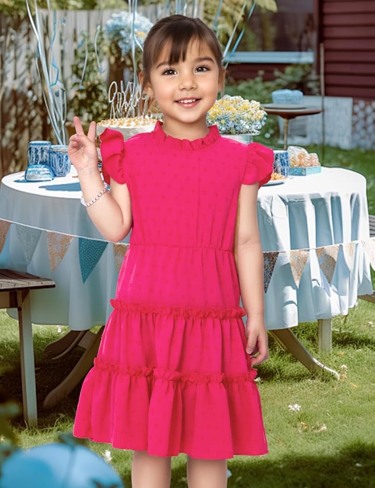 【تصميم ساحر】يتميز فستان الفتيات الصغيرات بتصميم ساحر يجمع بين الأكمام المرفرفة ورقبة دائرية كلاسيكية، مما يمنحه مظهرًا فريدًا ورائعًا. مع زر للإغلاق في الخلف، هذا الفستان أنيق ومريح لطفلتك الصغيرة.
