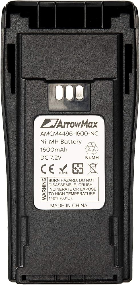 بطارية Arrowmax AMCM4496-1600-D Ni-MH 1600 مللي أمبير في الساعة متوافقة مع Motorola CP040 CP140 CP150 CP160 CP180 CP200 CP250 CP200D PR400 EP450 GP3188 GP3688 XIRP3688 NNTN4496