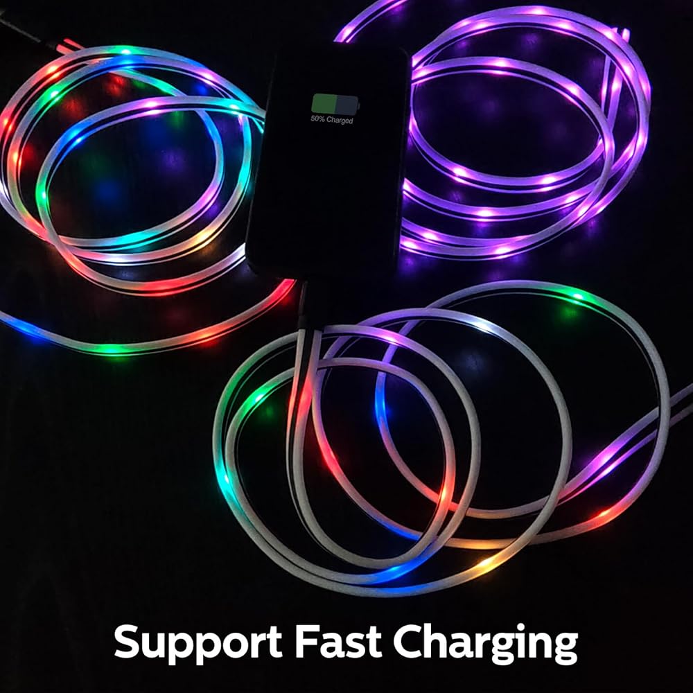 سطوع رائع: كابل الشحن السريع LED iPhone هو أحدث كابل LED بمظهر أنيق وأضواء رائعة، تعمل مصابيح LED بطريقة ممتعة، الأضواء ساطعة ومظلمة لشحن الهاتف، تمامًا مثل التنفس في إيقاع يعمل بسلاسة، مما يجعل الأمر أكثر متعة أثناء الشحن، حيث يضيء الضوء بدرجة كافية للسماح لك برؤية جميع أنحاء الغرفة دون إزعاج الأعضاء في الليل.