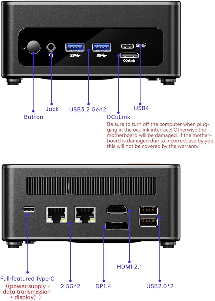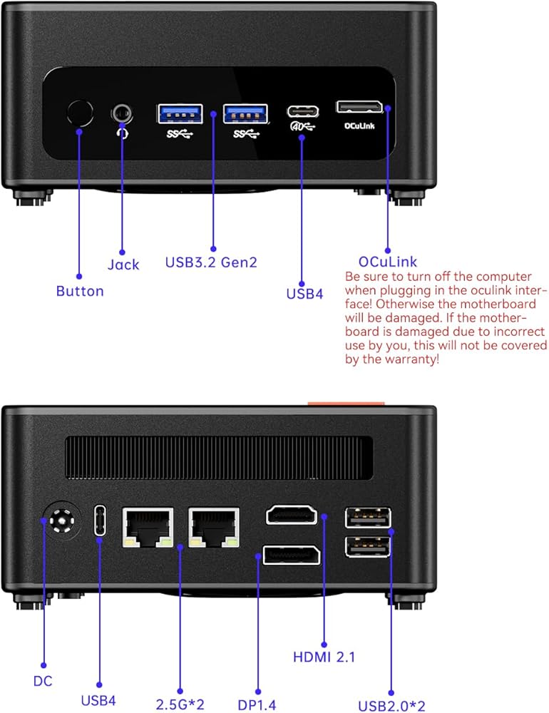 يتصل منفذ OCULINK بـEGU بخسارة أقل من Thunderbolt 4 وUSB4. ولا يشغل فتحة M.2 NVME، المعنى الحقيقي لامتلاك كمبيوتر صغير ذو فتحتين NVME OCULINK!
