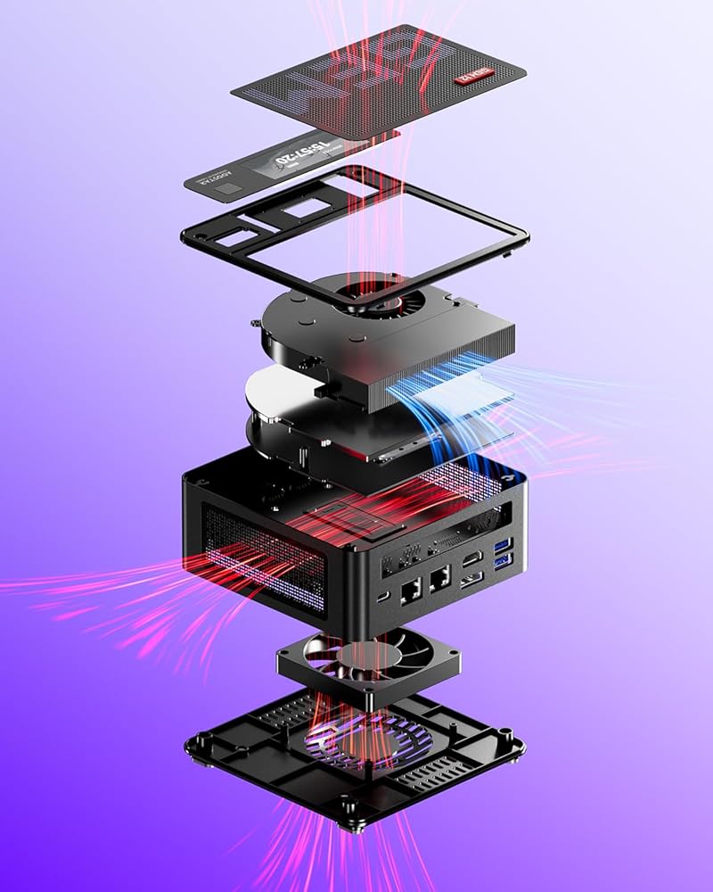 مروحة VC Vapor Chamber+ لوحدة المعالجة المركزية (CPU) للتبريد المزدوج مع فتحات تبريد كبيرة حول محيط الجسم، مما يؤدي بسهولة إلى إطلاق أداء الكمبيوتر الصغير.