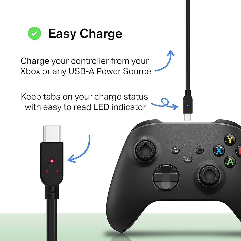 CHARGE STATUS INDICATOR: our Xbox charger cable has a built-in LED that shows your controller's charging status in real-time. Quickly check if it's fully charged, charging, or needs more time.