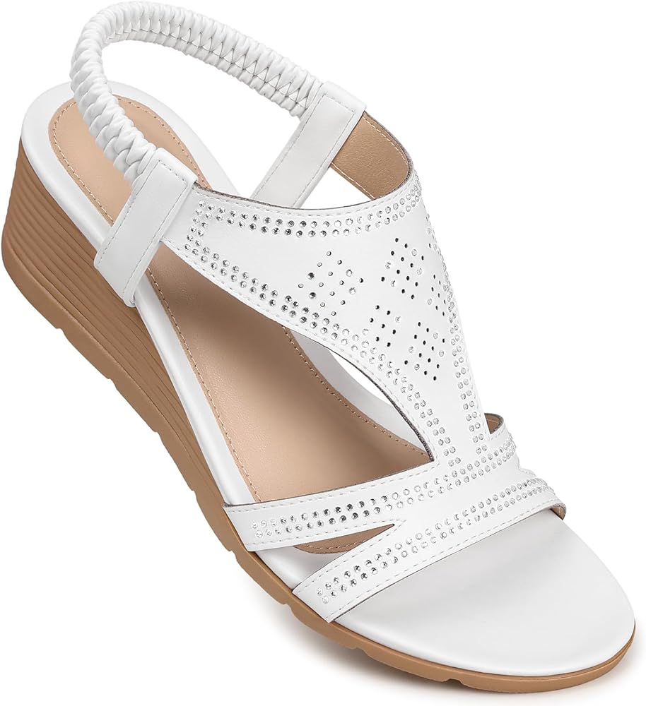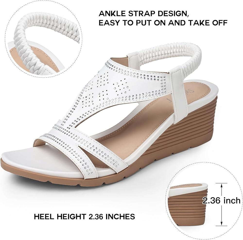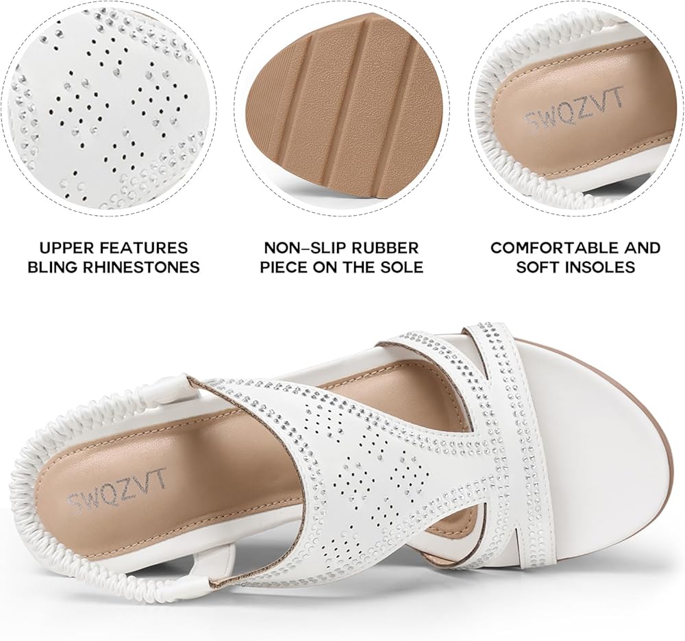 دعم مبطن: صنادل ويدج للنساء بكعب منخفض، صنادل إسفين مريحة للنساء، صنادل أنيقة مفتوحة عند الأصابع للنساء، صنادل صيفية للسيدات بحزام الكاحل، صنادل مشي بأحجار الراين للنساء، التصميم المريح يقلل من تعب القدم، ويضمن تجربة مريحة حتى خلال الأيام الطويلة من يرتدي.