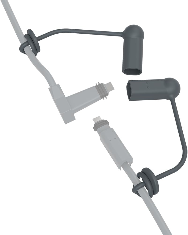 - يتميز كل غطاء بحلقة من السيليكون تلتف بشكل آمن حول طرف الكابل، مما يمنع فقدان الغطاء.