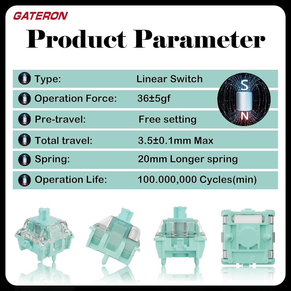[الجودة] مفتاح لوحة المفاتيح اليشم المغناطيسي GATERON هو مفتاح مغناطيسي غير متصل مدعوم بمستشعر تأثير Hall.