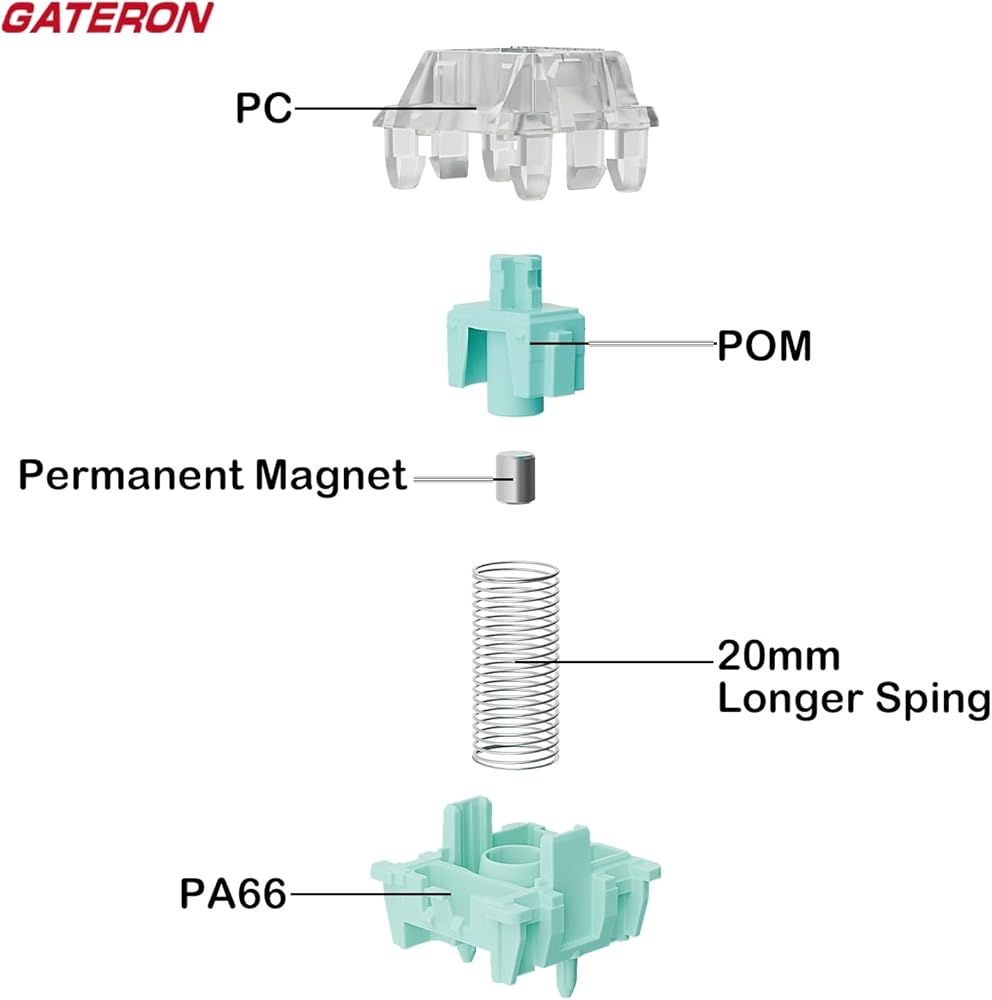 مفاتيح لوحة المفاتيح الإمبراطور المغناطيسية Gateron، تم تشحيمها مسبقًا من المصنع/خطية/إعدادات بحرية قبل السفر زنبرك أطول 20 مم فقط للوحة مفاتيح الألعاب المغناطيسية (10 قطع)