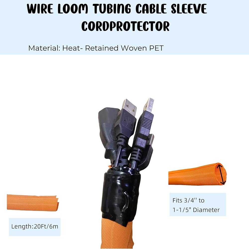 • 【Split Braided Wire Loom】- Inner Diameter 3/4" fits 3/4''(20mm) to 1-1/5"(30mm) Diameter Cables Self-Wrapping. Length: 20Feet, Operating Temperature -103 to 257℉.Melt Temperature:446℉.