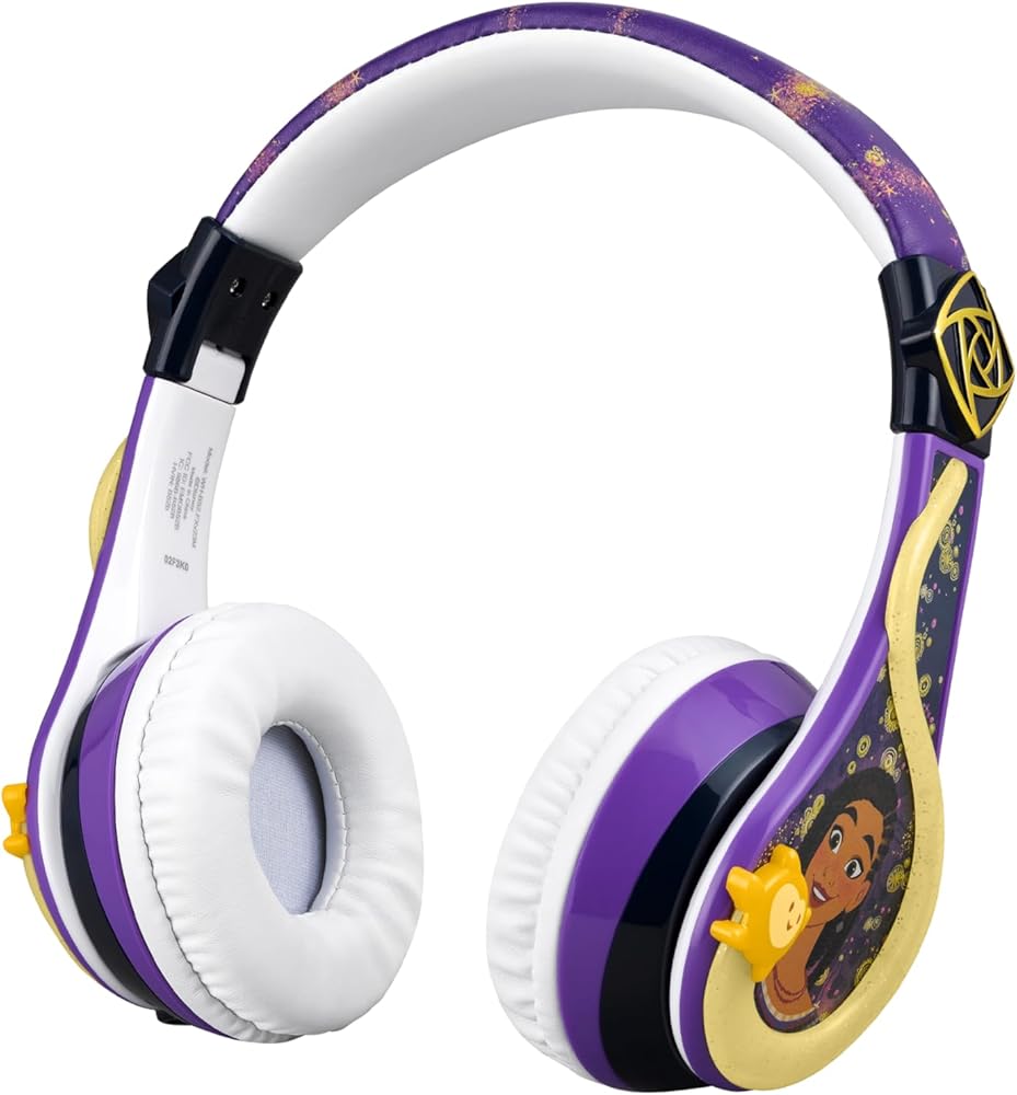 سماعات رأس eKids Disney Wish Bluetooth للأطفال، سماعات رأس لاسلكية مزودة بميكروفون تتضمن سلك Aux وسماعات رأس قابلة للطي للأطفال منخفضة الحجم للمدرسة أو المنزل أو السفر