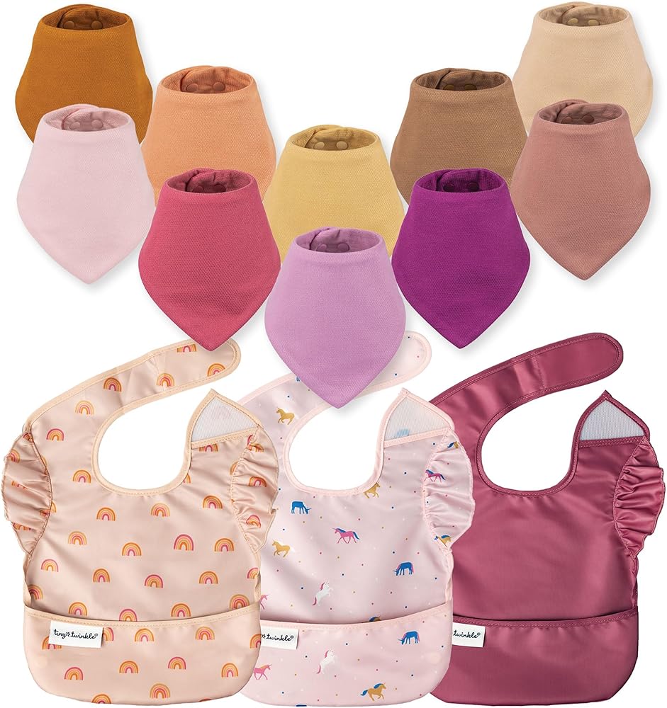 Control the dribble, drool, and mealtime mess! Tiny Twinkle bibs help to make mom and dads' lives easier.