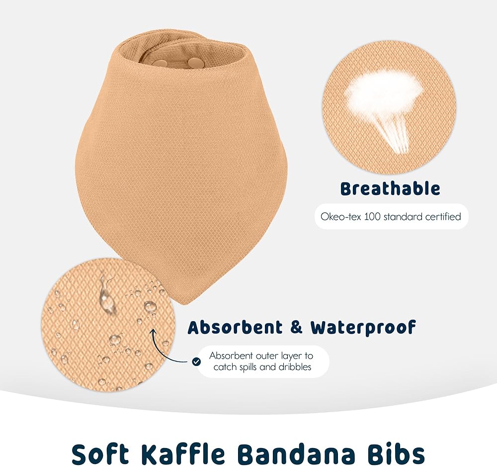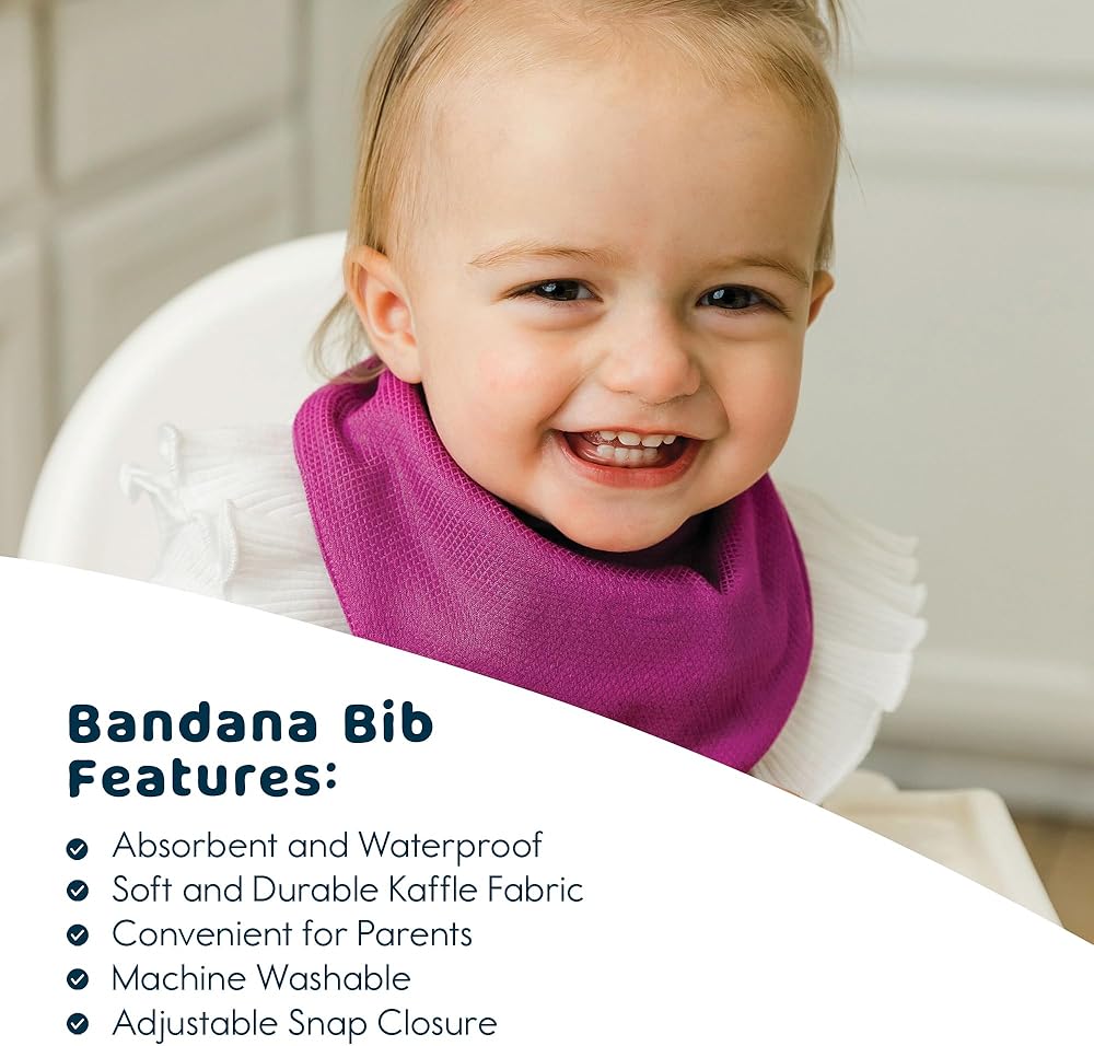 ABSORBENT & WATERPROOF: Bandana Bibs feature an absorbent outer layer to catch drool and an inner waterproof layer to keep infants comfortable and dry.