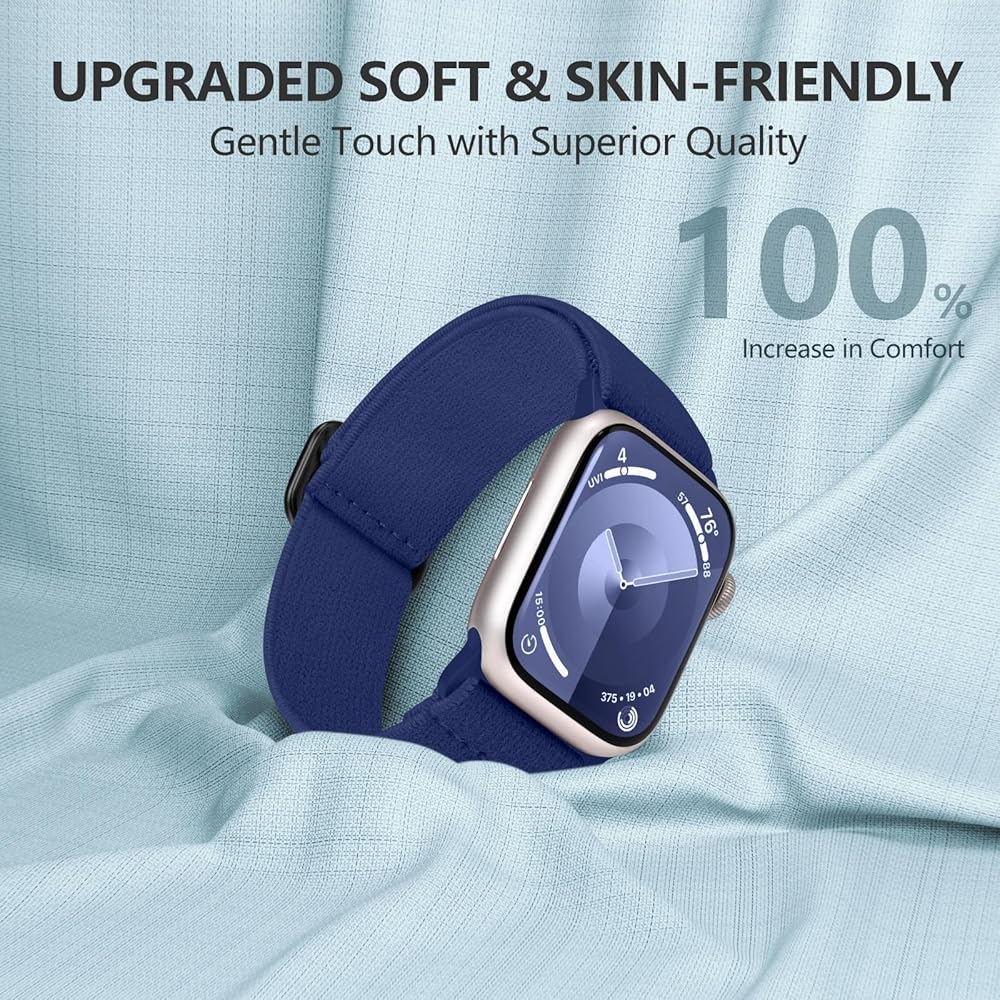 Our elastic band for Apple watch men women is crafted from superior nylon material, which offers a gentle feel against your wrist, ensuring all-day comfort without irritation.