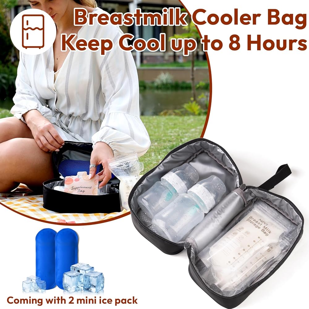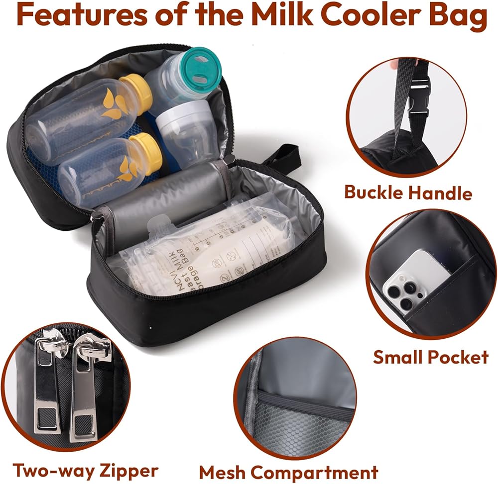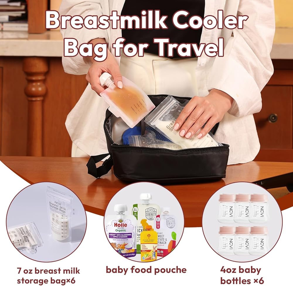 حقيبة سفر مبردة لحليب الأم من NCVI، حقيبة تبريد صغيرة محمولة لحليب الثدي وزجاجة الطفل/الطعام، حقيبة تبريد معزولة ومقاومة للماء مع عبوتين من الثلج، مناسبة للسفر وفي الهواء الطلق والرعاية النهارية