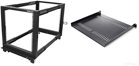 StarTech.com حامل خادم ذو إطار مفتوح 12U ورف تثبيت على حامل خادم مزود بفتحات تهوية 1U