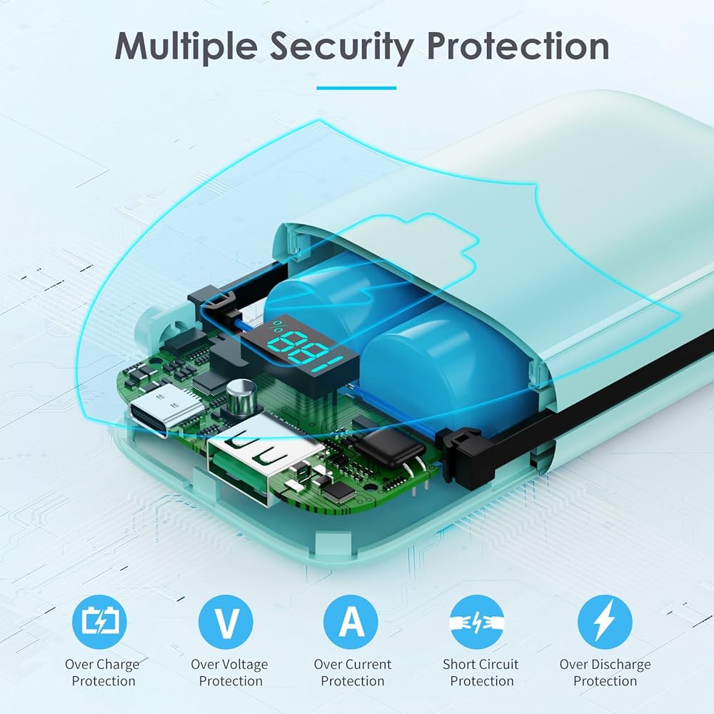 [شحن آمن ذكي وموثوق] بنك طاقة محمول مزود بشريحة ذكية جديدة لحماية أجهزتك من الشحن الزائد والجهد الزائد والتيار الزائد والدوائر القصيرة. تتوافق بطارية الهاتف الاحتياطية هذه مع الحد القياسي للطيران الدولي، ويمكنك أخذها إلى أي مكان تريده.