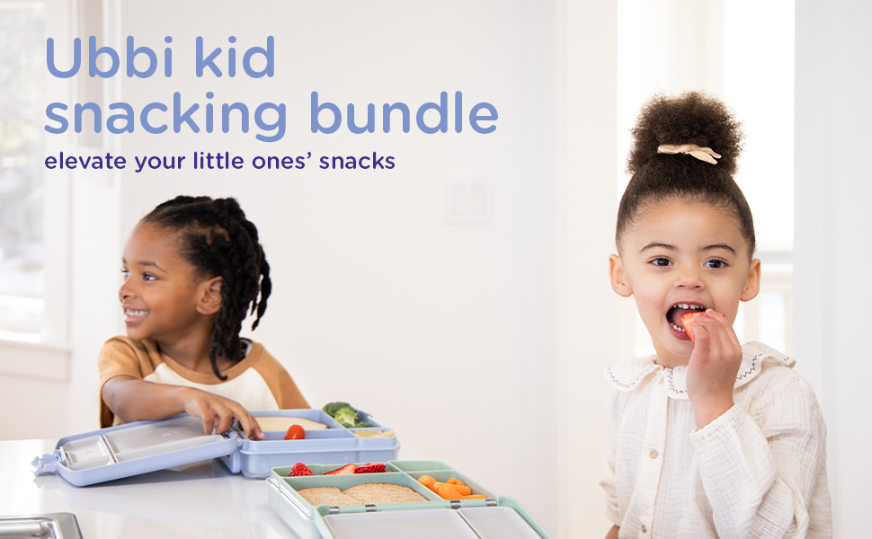 Elevate your little ones' meals or snacks with the Ubbi snacking bundle. Included is the bento box, tweat snack container and the grape cutter. Thoughtfully designed and parent-approved, the Ubbi bento box is equipped with a rubber seal to keep food fresh and prevent leakage while little ones are taking lunch on the go. It features 4 versatile compartments portioned perfectly for a child's appetite to encourage a healthy and balanced meal. Designed with little hands in mind the ergonomic handle is a perfect fit. The double latch ensures extra protection by avoiding accidental openings to keep all contents secure. Easy-to-clean and dishwasher-safe, it is made of high-quality food-grade BPA-free material. The Ubbi tweat snack container is an innovative snack container that combines playfulness and functionality making snack time enjoyable for both parents and children. Fitted for a small child's hand, The bird shaped snack container is made of Tritan and equipped with a rubber seal to store and keep snacks fresh. Cleverly designed, the lid remains attached when open and the weighted base leans and wobbles to prevent the container from tipping over. The opening of the snack container has a practical soft spill guard and is large enough for easy snack access. The Ubbi dual grape cutter was cleverly designed like a pair of scissors for parents to safely quarter grapes in an intuitive way. To make parent's life even easier, the grape cutter has two separate cavities allowing to quarter two grapes or cherry tomatoes at a time. Ergonomic, functional, and easy to use, the grape cutter can easily be taken apart for cleaning and is also dishwasher safe.