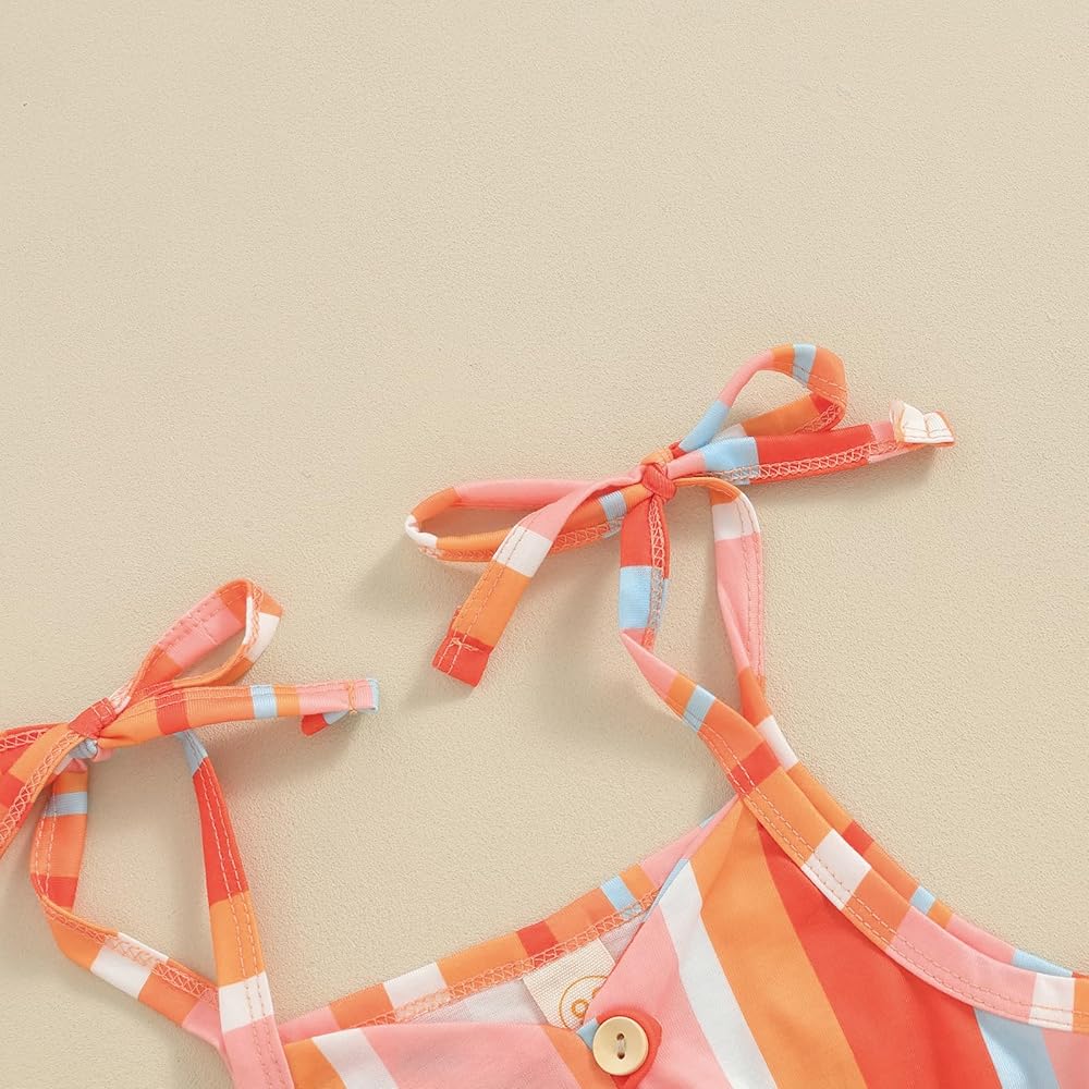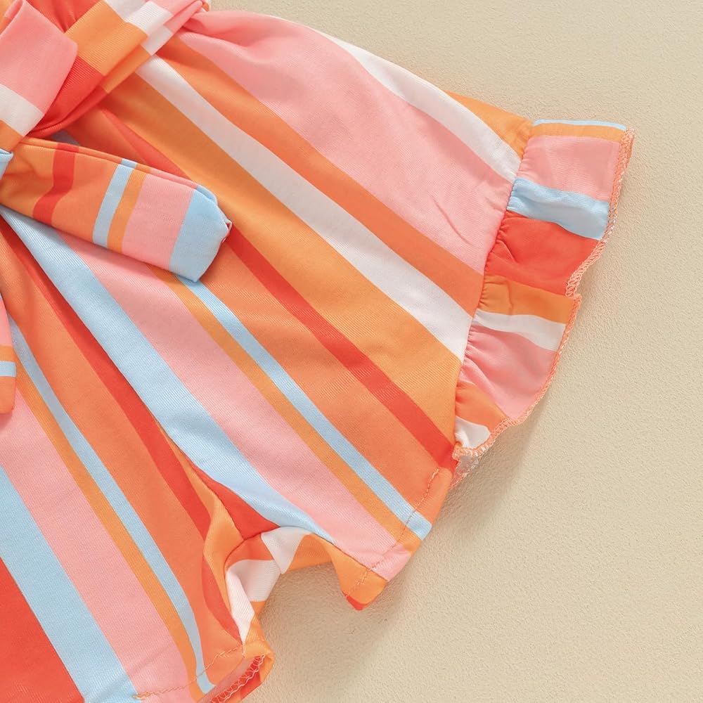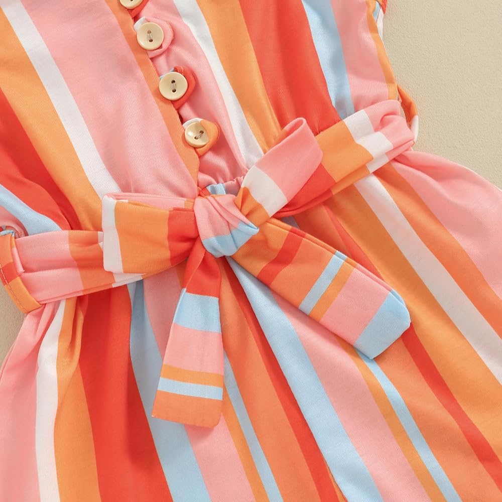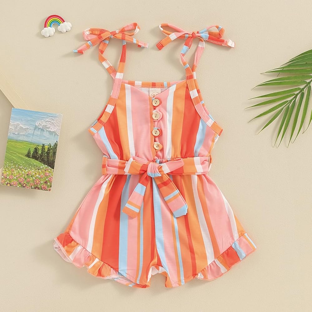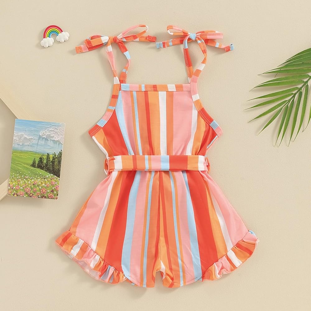 Kids Baby Girl Summer Clothes Spaghetti Straps Rainbow Print Romper Floral Jumpsuit with Belt Boho Outfits