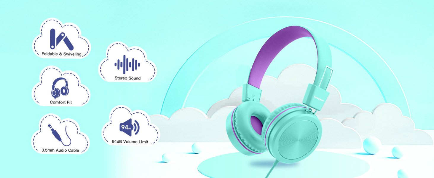 【أنيق وممتع في الارتداء】تصميم مموج فريد للعثور على المقاس المثالي لأسلوب طفلك. سماعات الرأس Cowyawn للأطفال لطيفة وأنيقة وعملية. أفضل الهدايا لأطفالك!