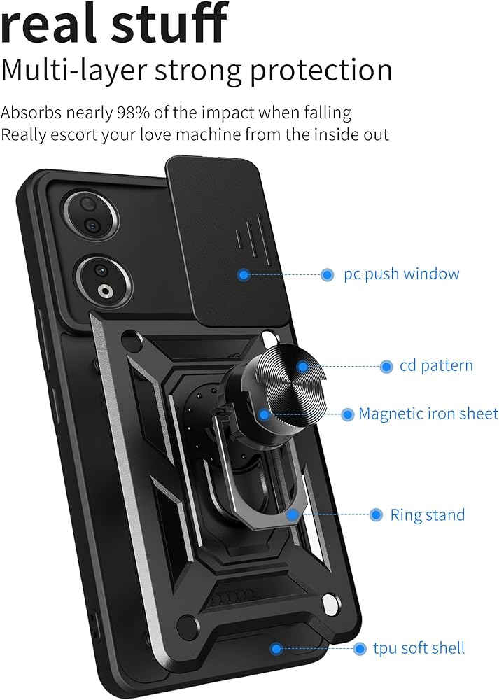 [Multifunction] Metal kickstand can rotate 360°, easy to rotate and sturdy on the case. There is a push window design at the camera, which can effectively protect the camera of the phone.Built in kickstand gives you the convenience to watch videos and movies hands-free with desired and stability.