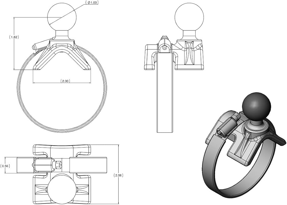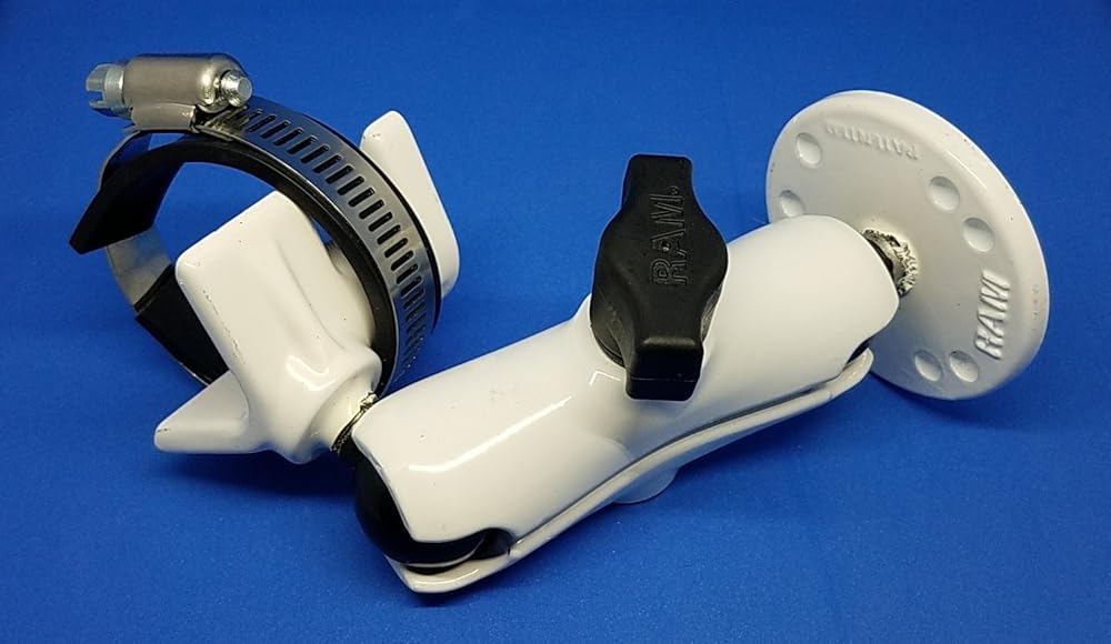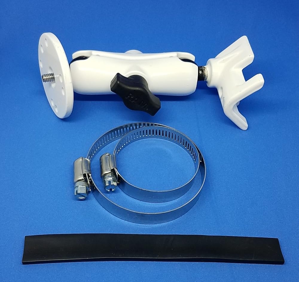 RAM MOUNT V-SHAPED BASE and 1/4"-20 STUD BASE The RAM Mount Powder Coated Marine Grade Aluminum Standard 3.0" Double Socket Arm has a socket at either end to allow a 1" diameter ball accessories to be connected. On one end comes a 2.5" Round base with a 1/4" x 20 stud for attaching any type of camera (Digital, Camcorder, etc). On the other end is a V-Shape base for Rails and Yokes to attach to any rail from 1.0" to 2.1" in diameter. Perfect for boats, bikes, retail, where a flexible and strong mount is required to stand the test of time. Composite standard double socket arm, has a socket at both ends that accommodates 1-Inch ball bases Patented universal rubber ball and socket system allows you to mount virtually anything anywhere. A single spring inside the arm opens the end sockets, allowing you to pivot the ball and socket connection Dimensions Arm: Overall Length: 3.69-Inch, Socket-To-Socket Length: 3-Inch High Strength Composite Superior shock and vibration isolation for electronics Unique design provides easy installation, mobility, strength, adjustability and versatility Construction provides a light weight and corrosion resistant product Place the saddle shaped plate on the rail then wrap the metal clamp strap around the rail and plate Included in Kit: (1) QTY 6" long metal strap, (1) QTY 8" long metal strap, (1) QTY 5.5" rubber strip that supports the metal straps to avoiding scratching or marking of the rail Powder Coated Marine Grade Aluminum Components are the standard black aluminum and rubber materials, and the metal pieces were painted white by RAM to suit with light colored environments. All kits are new and sealed in bags as from the manufacturer.
