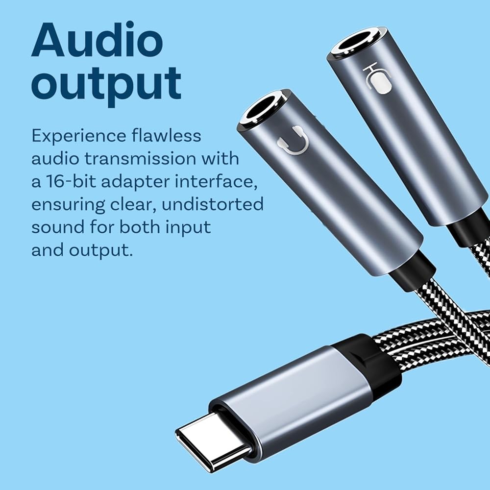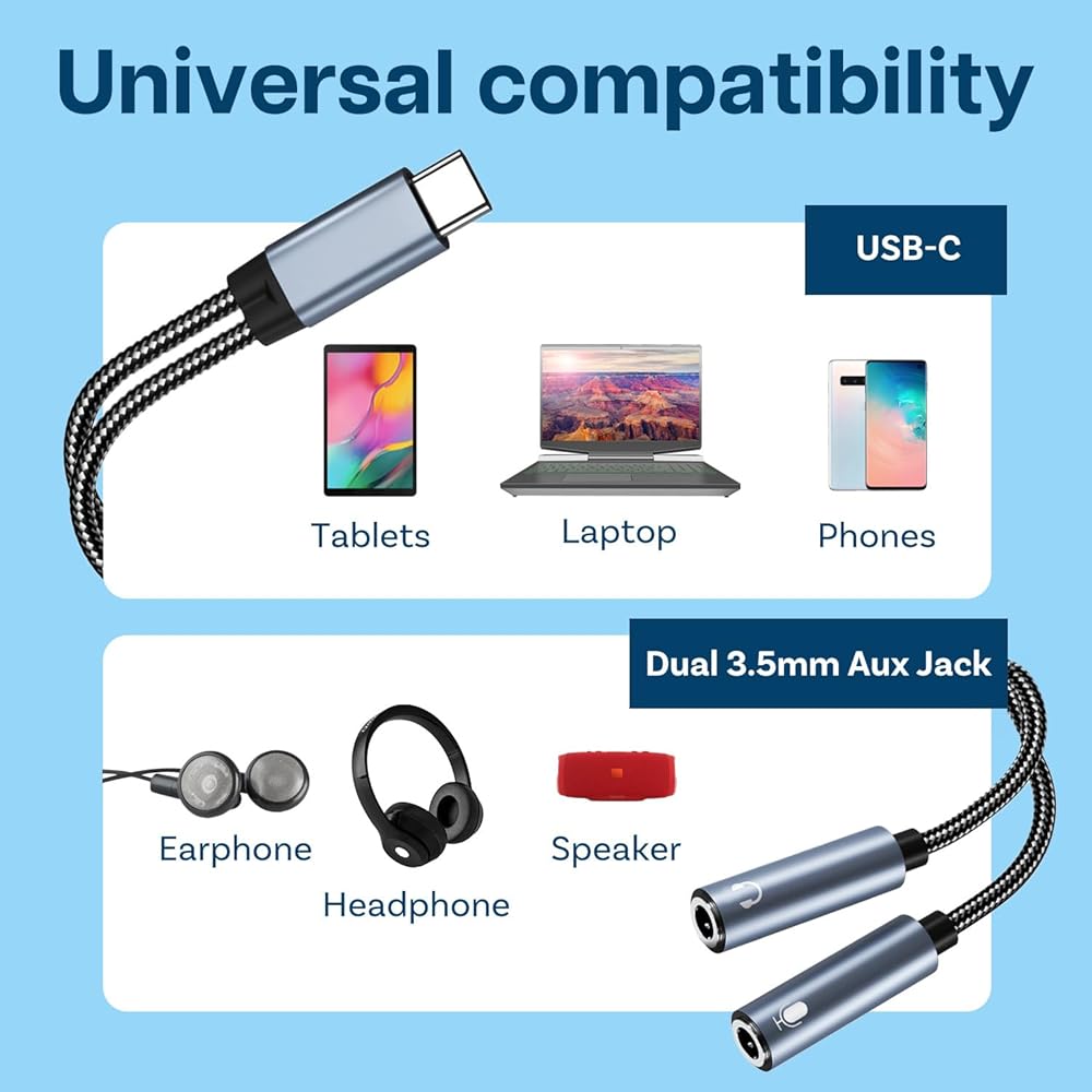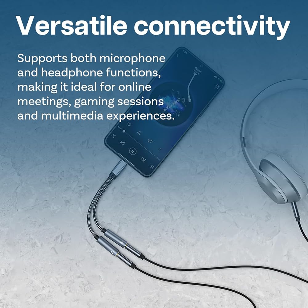 Versatile Connectivity - Connect your USB-C device to audio equipment with dual 3.5mm ports. This adapter supports both microphone and headphone functions, making it ideal for online meetings, gaming sessions, and multimedia experiences on devices like your phone, laptop or tablet.